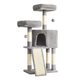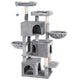 Ansamblu de Joaca pentru Pisici Teno320, cu 3 platforme de observatie, 3 niveluri, 1 casuta, franghie si minge de joaca, stalpi pentru zgariat, captuseala extra moale, structura stabila, 110 cm, gri