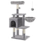 Ansamblu de Joaca pentru Pisici Teno319, cu 3 platforme de observatie, 5 niveluri, 3 casute, franghie si minge de joaca, stalpi pentru zgariat, captuseala extra moale, structura stabila, 164 cm, gri deschis