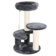 Ansamblu de Joaca pentru Pisici Teno2142, tip turn, 2 platforme de observatie, 4 niveluri, 1 casuta, hamac, franghie si mingiuta de joaca, stalpi pentru zgariat, captuseala extra moale, structura stabila, 136 cm, gri inchis