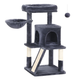 Ansamblu de Joaca pentru Pisici Teno629, tip turn, 3 platforme de observatie, 6 niveluri, 2 casute, scara, franghie si mingiuta de joaca, stalpi pentru zgariat, captuseala extra moale, structura stabila, 138.5 cm, gri inchis