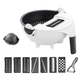 6 Lame Incluse: Setul vine cu 6 lame din otel inoxidabil, durabile si rezistente la uzura, ideale pentru felierea, razuirea si tocarea diferitelor tipuri de legume si fructe, de la rondele subtiri pana la felii mai groase.