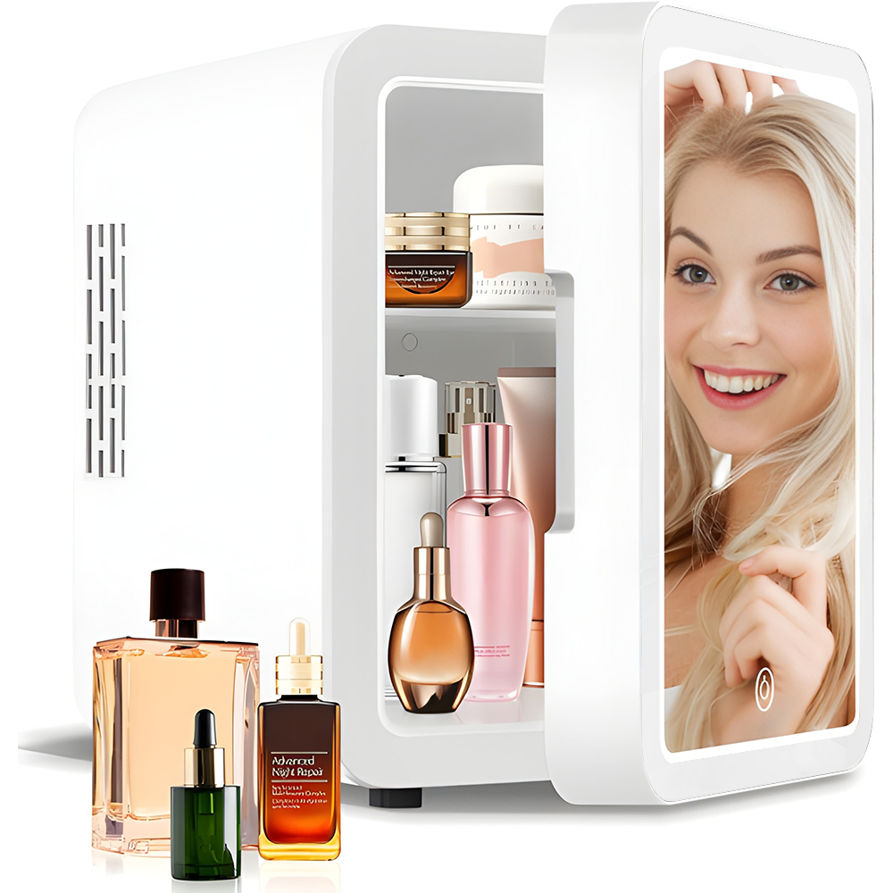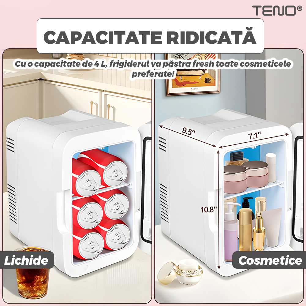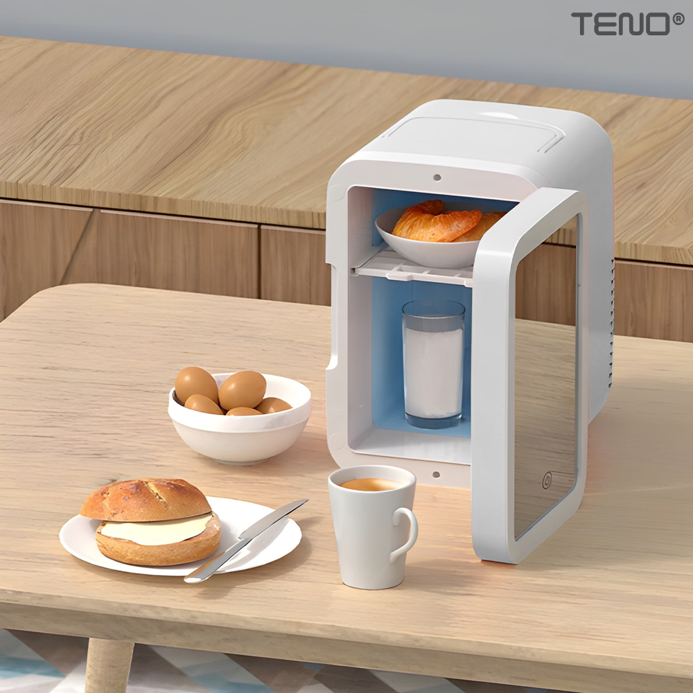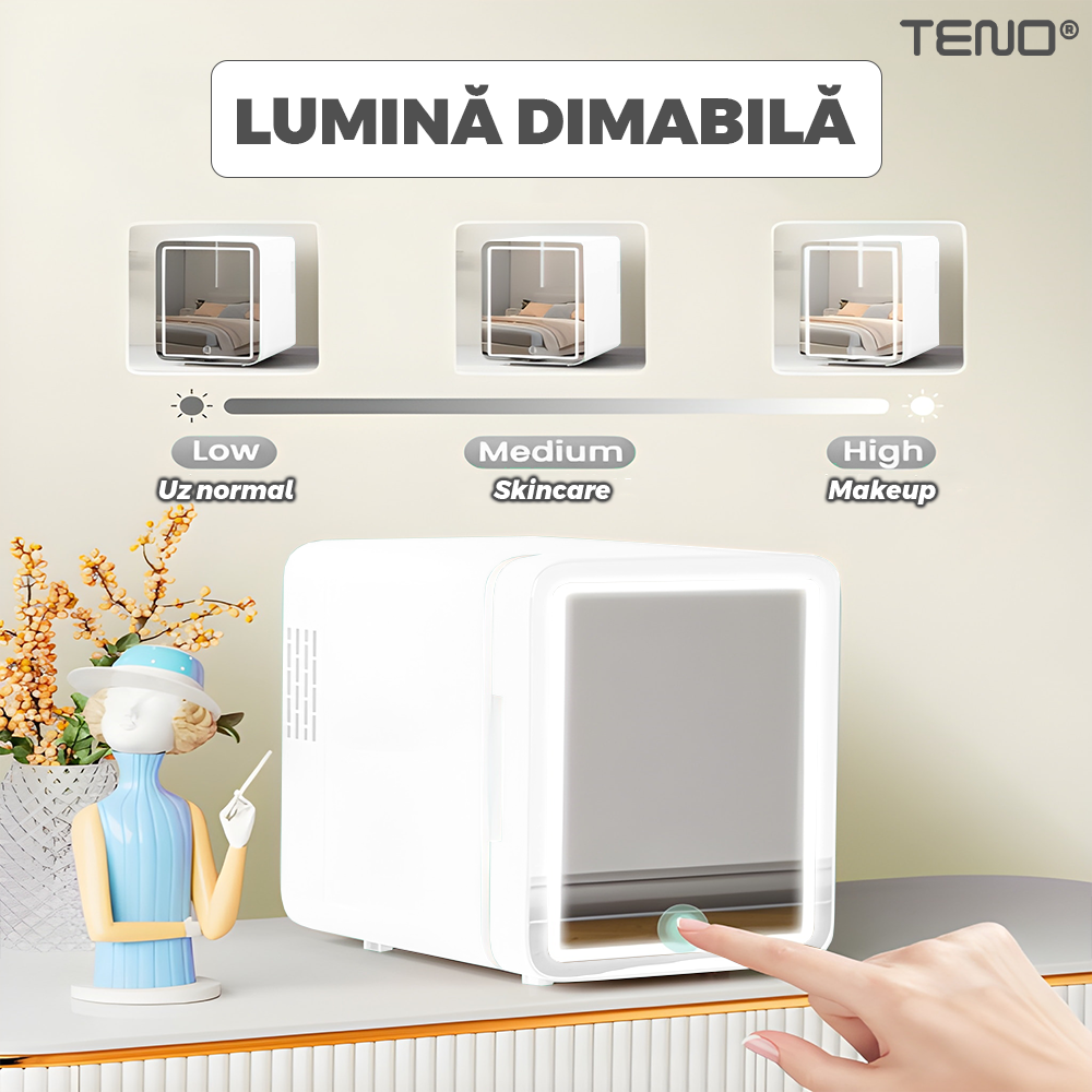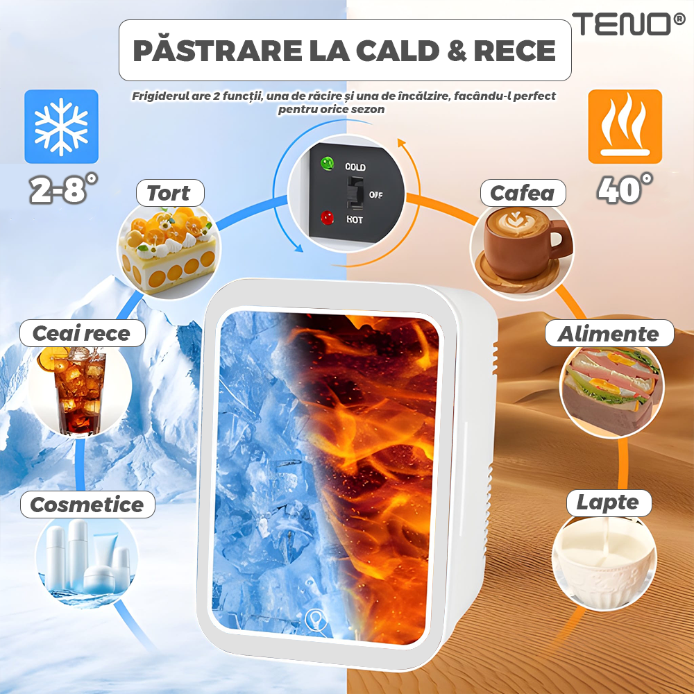 Mini Frigider Cosmetice Teno2054, portabil, functie de racire/incalzire, oglinda cosmetica. lumina LED dimabina, capacitate 4L, maner de prindere, 2 moduri de alimentare, alb