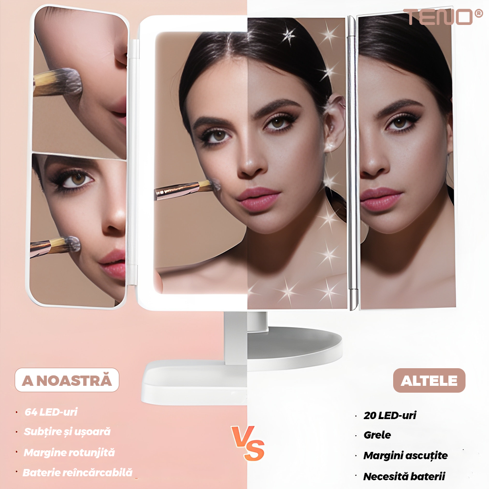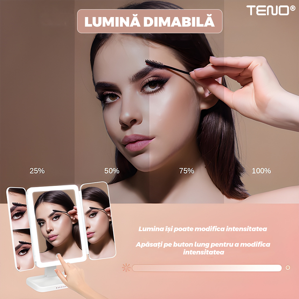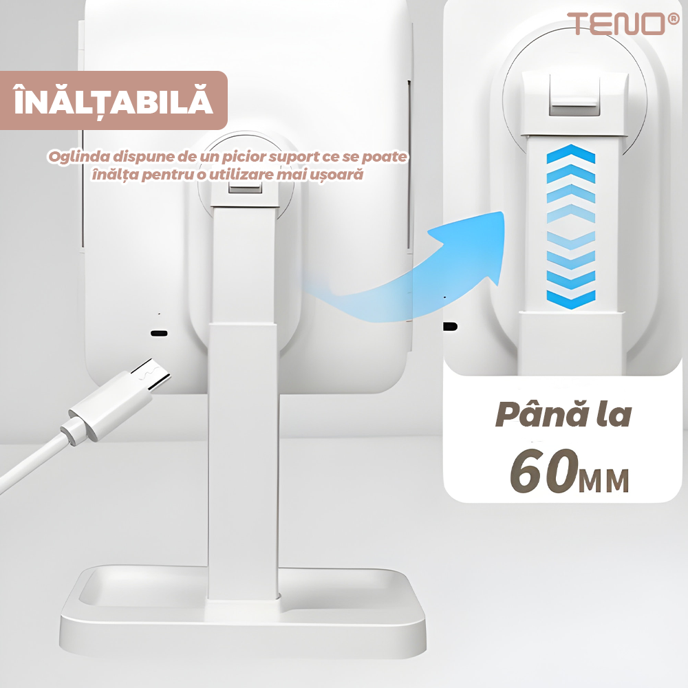 Iluminarea LED integrata ofera o lumina clara si naturala, ideala pentru aplicarea machiajului in cele mai bune conditii. Lumina uniforma te ajuta sa observi fiecare detaliu si sa obtii un rezultat impecabil.