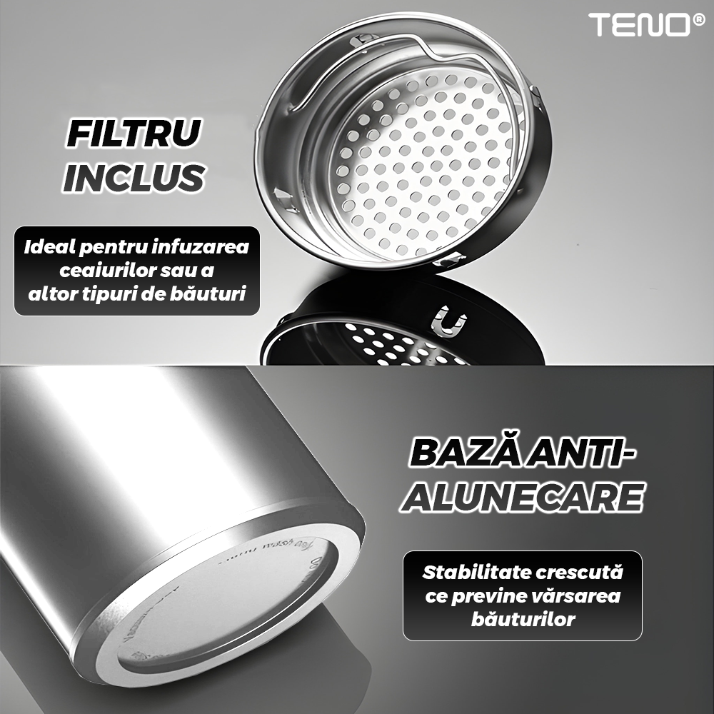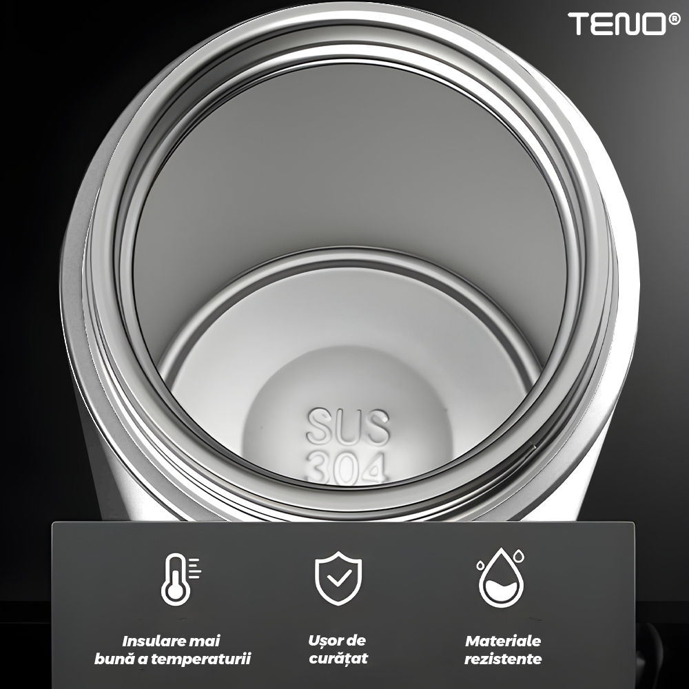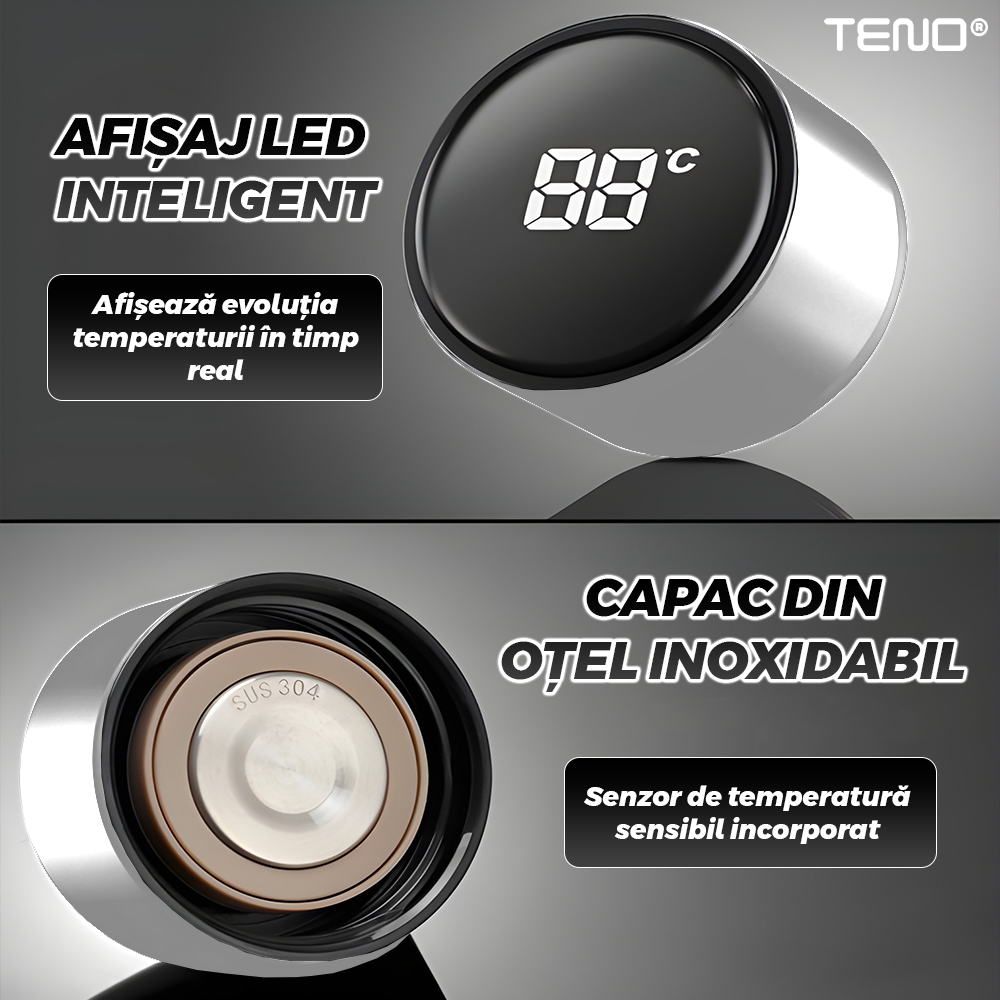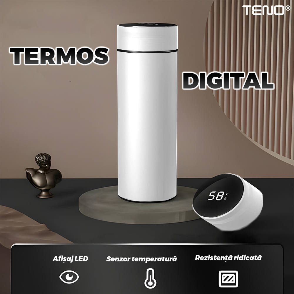 Termos Smart Teno2233, afisaj LED, ecran tactil, sita si infuzor, perete dublu, capac anti-scurgere, insulare a temperaturii, 500 ml, alb