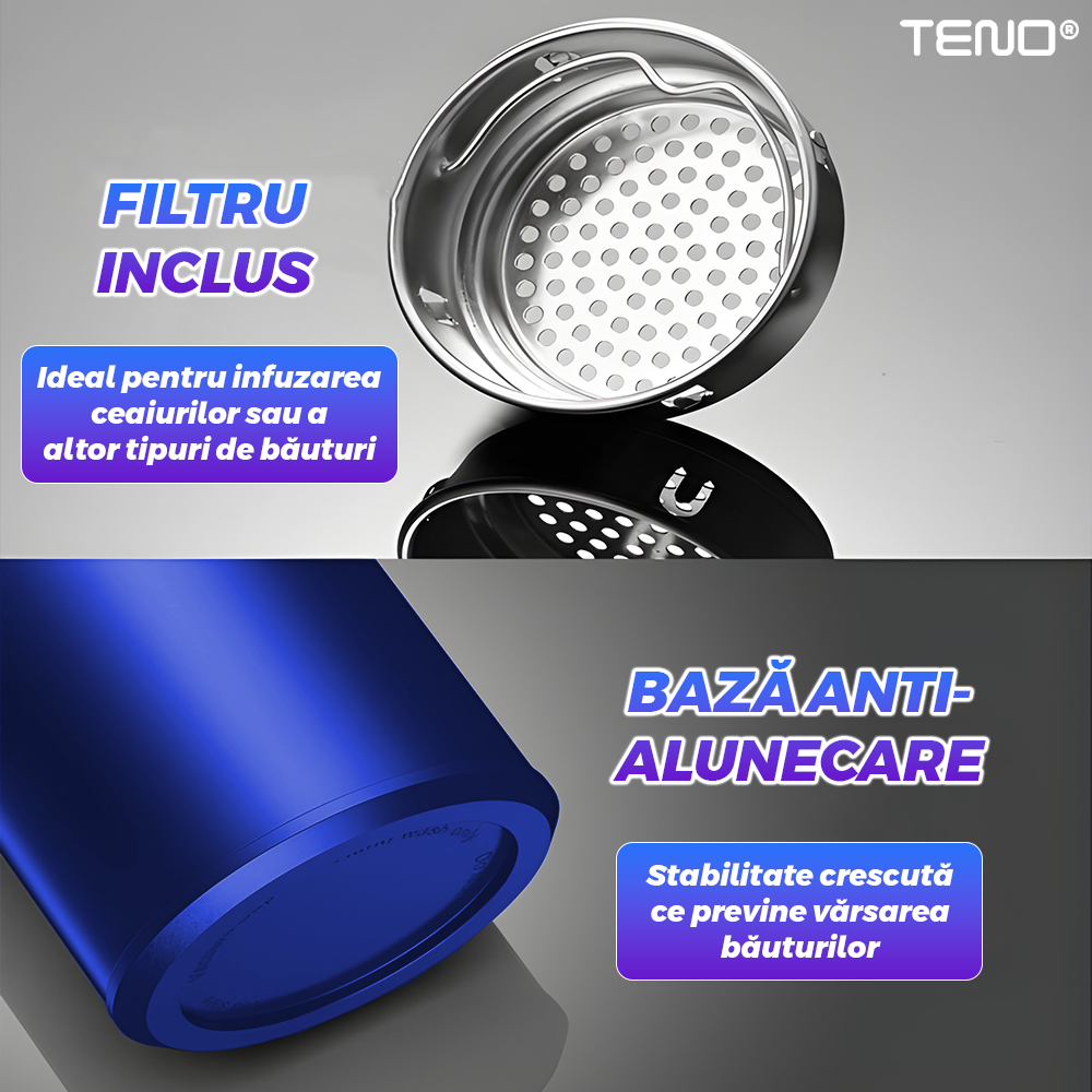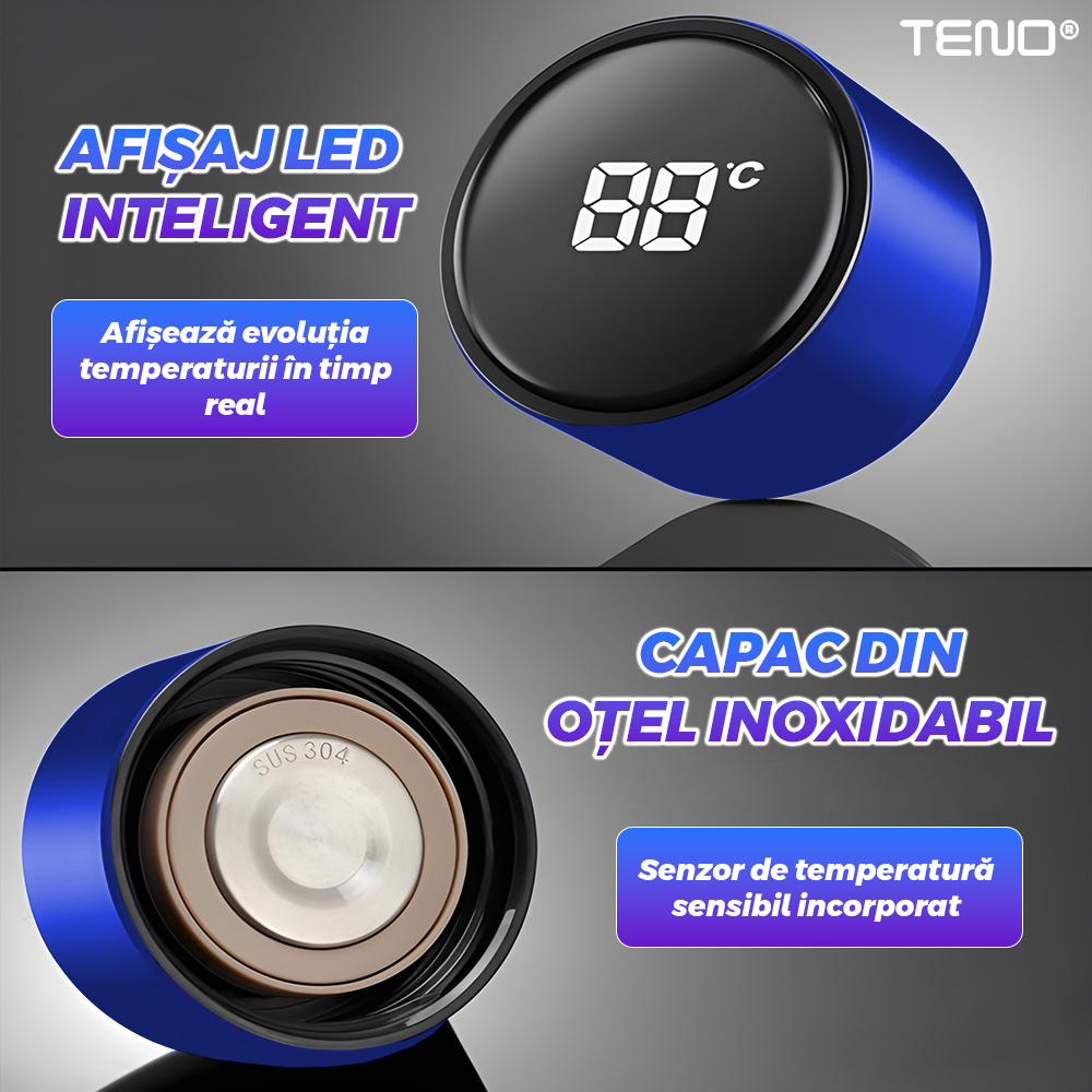 Termos Smart Teno2234, afisaj LED, ecran tactil, sita si infuzor, perete dublu, capac anti-scurgere, insulare a temperaturii, 500 ml, albastru