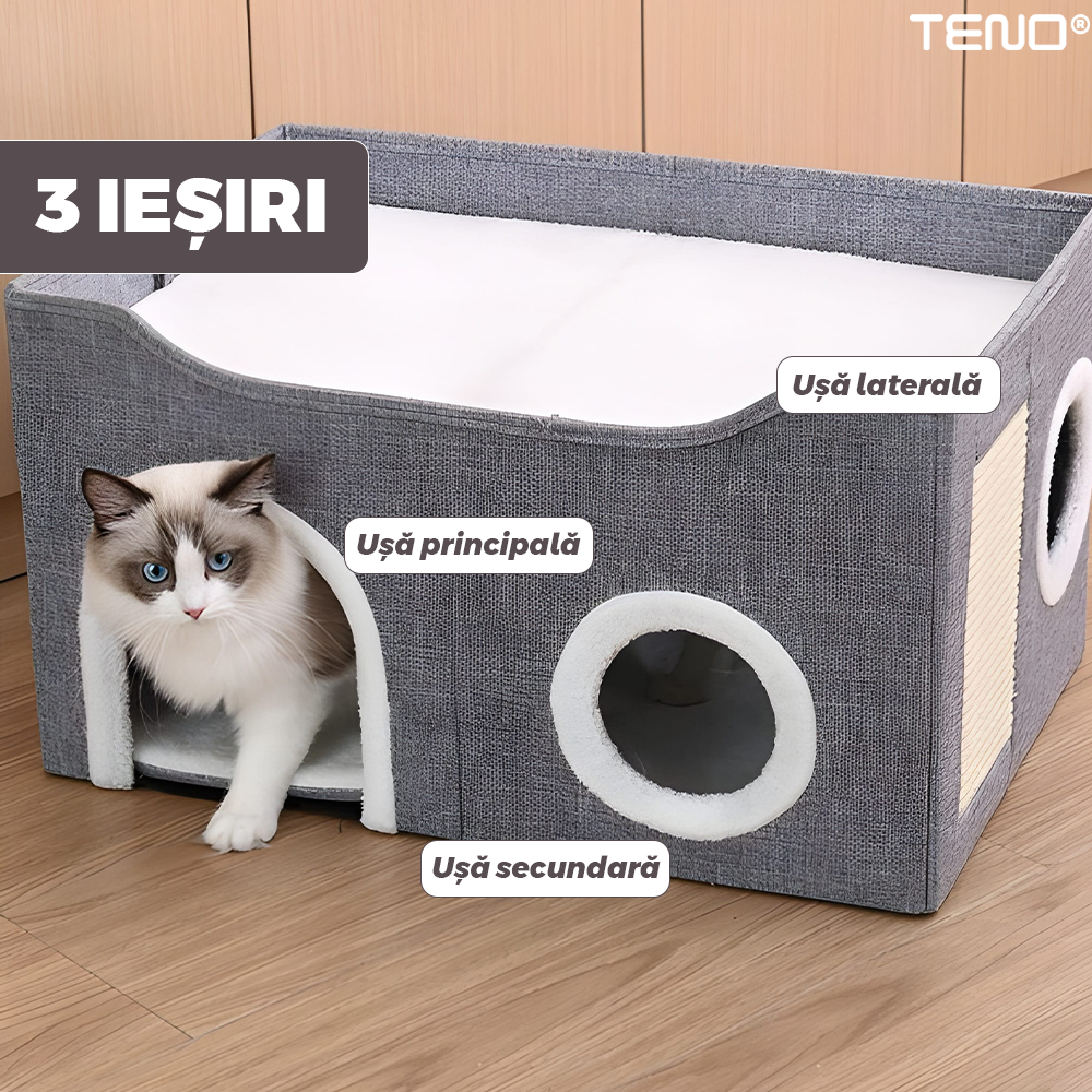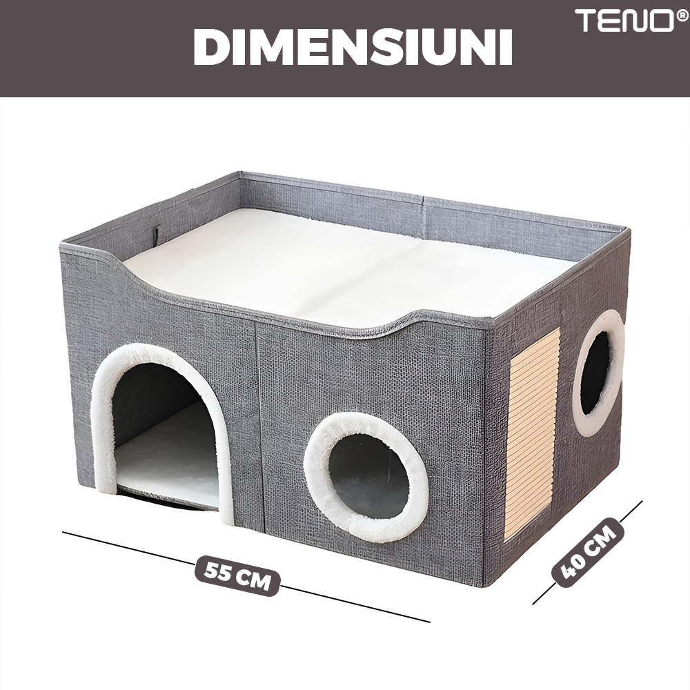 Este un accesoriu practic pentru stapani si un adevarat refugiu pentru animale, imbinand utilitatea cu rasfatul zilnic al felinei tale.