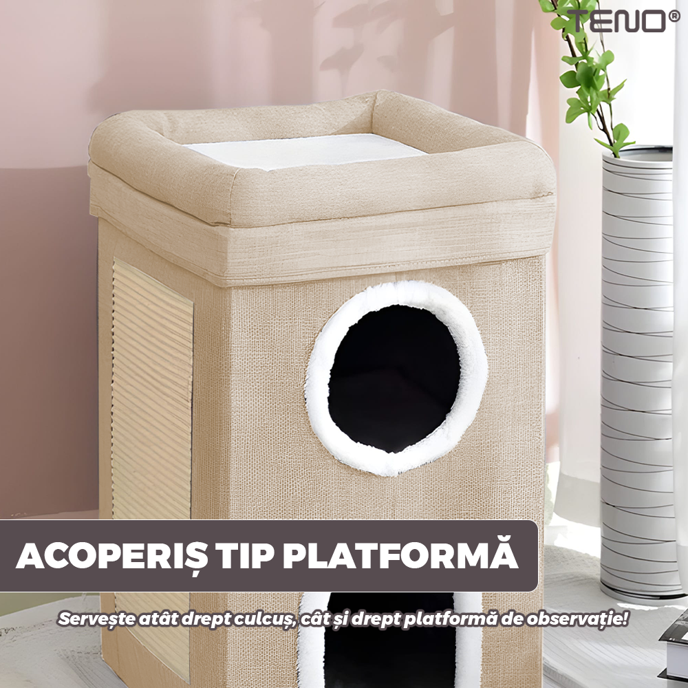 Este un accesoriu practic pentru stapani si un adevarat refugiu pentru animale, imbinand utilitatea cu rasfatul zilnic al felinei tale.