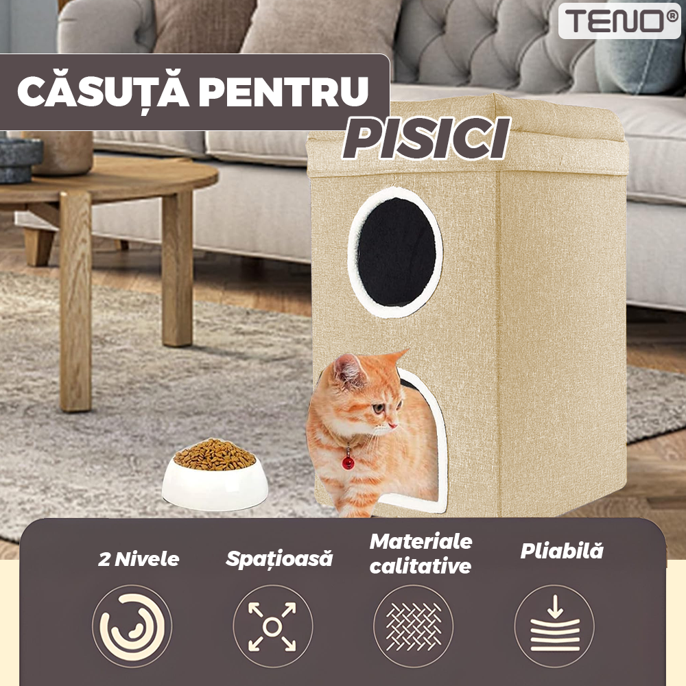 Casuta pentru pisici de interior este alegerea ideala pentru a-i oferi felinei tale un spatiu personal, confortabil si sigur, unde se poate relaxa, juca sau ascunde.