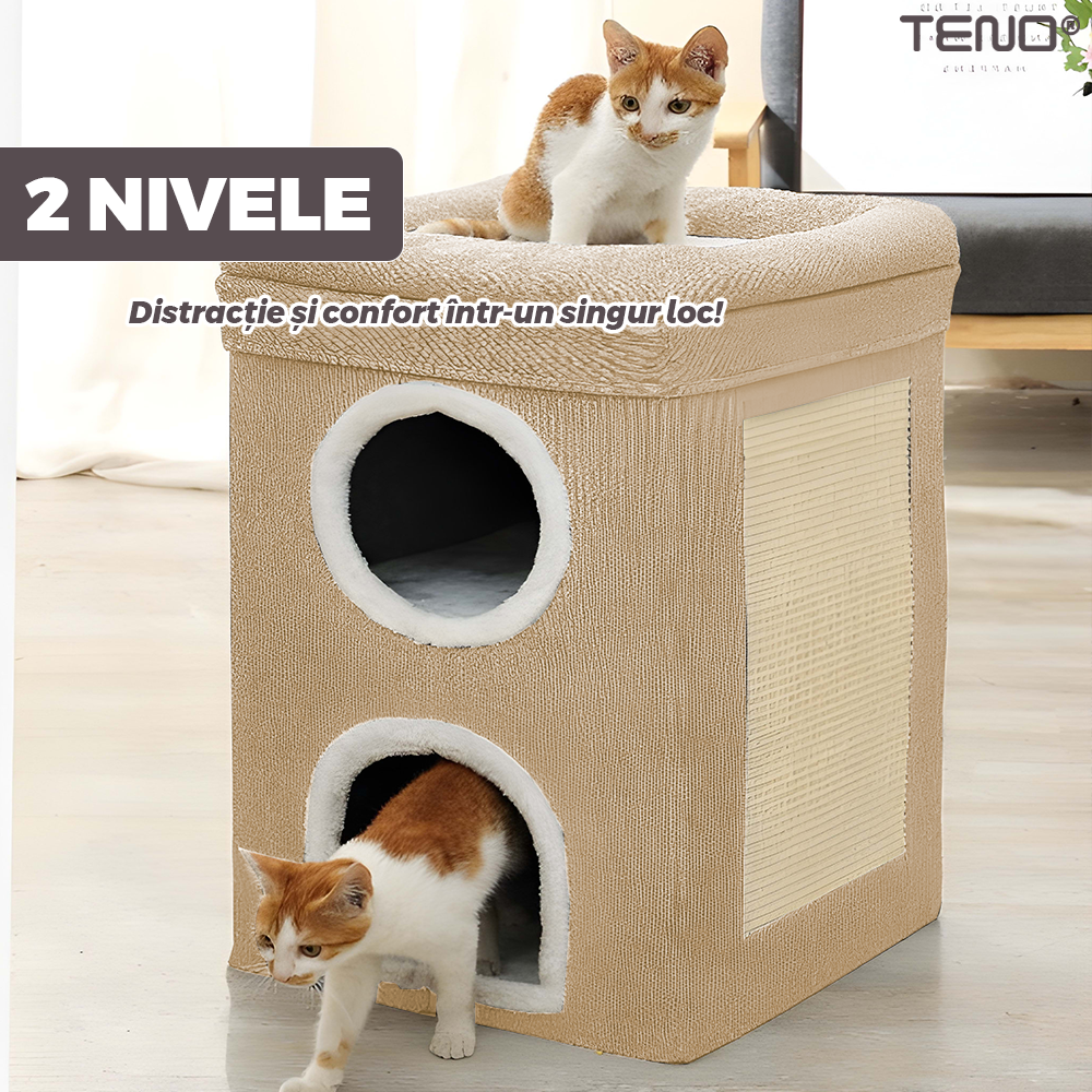 Casuta este potrivita pentru pisici de toate varstele, de la pui curiosi si energici, pana la pisici adulte care cauta liniste si confort.
