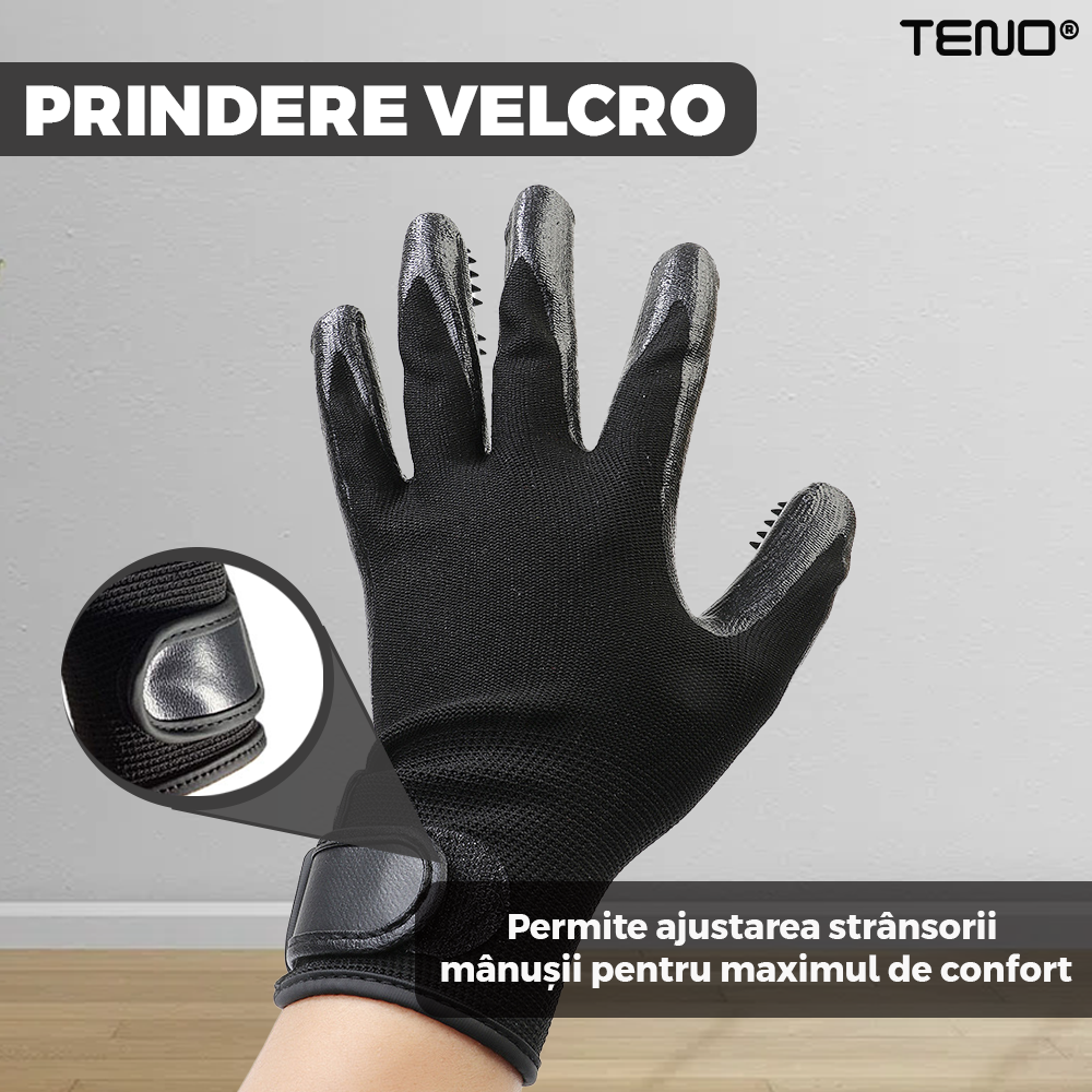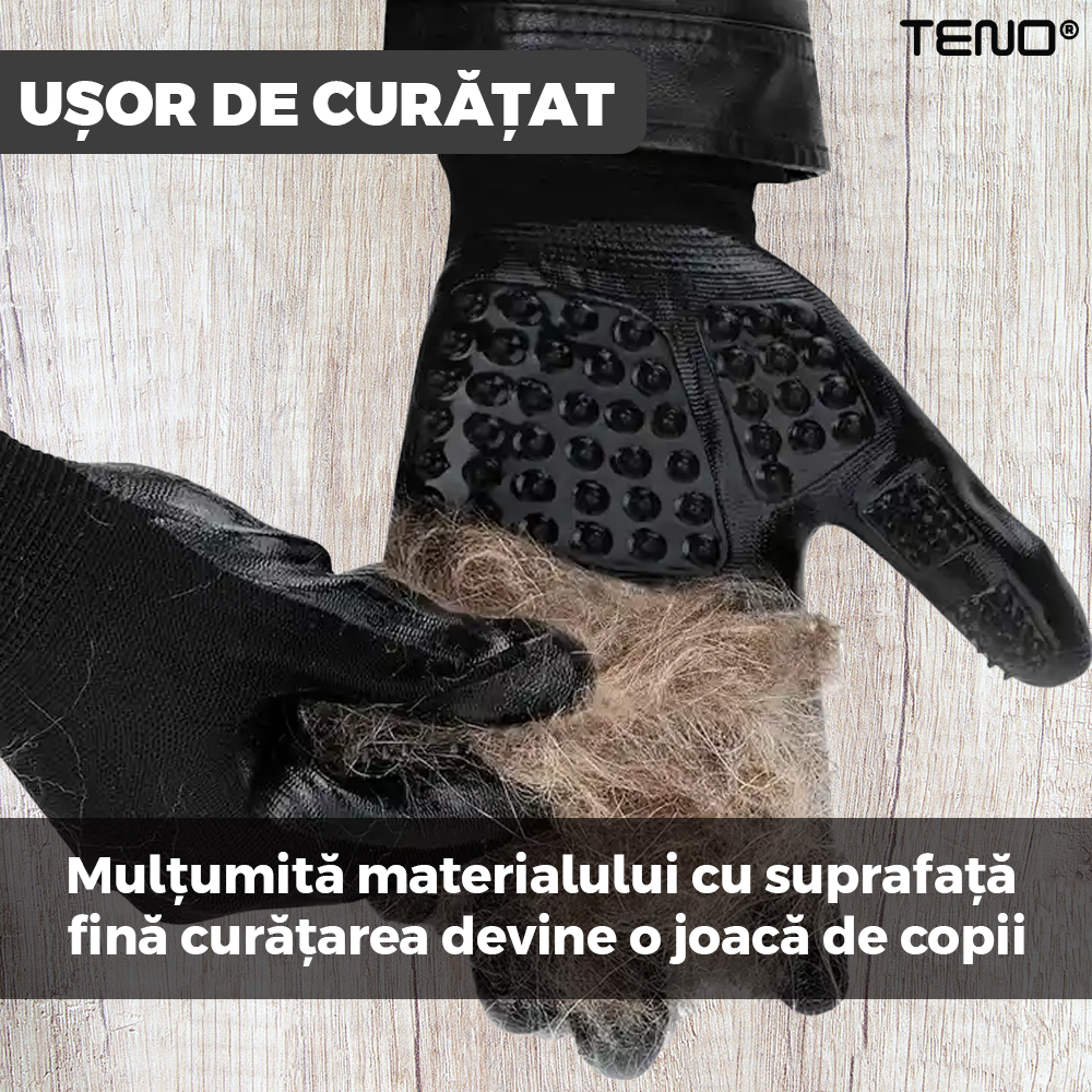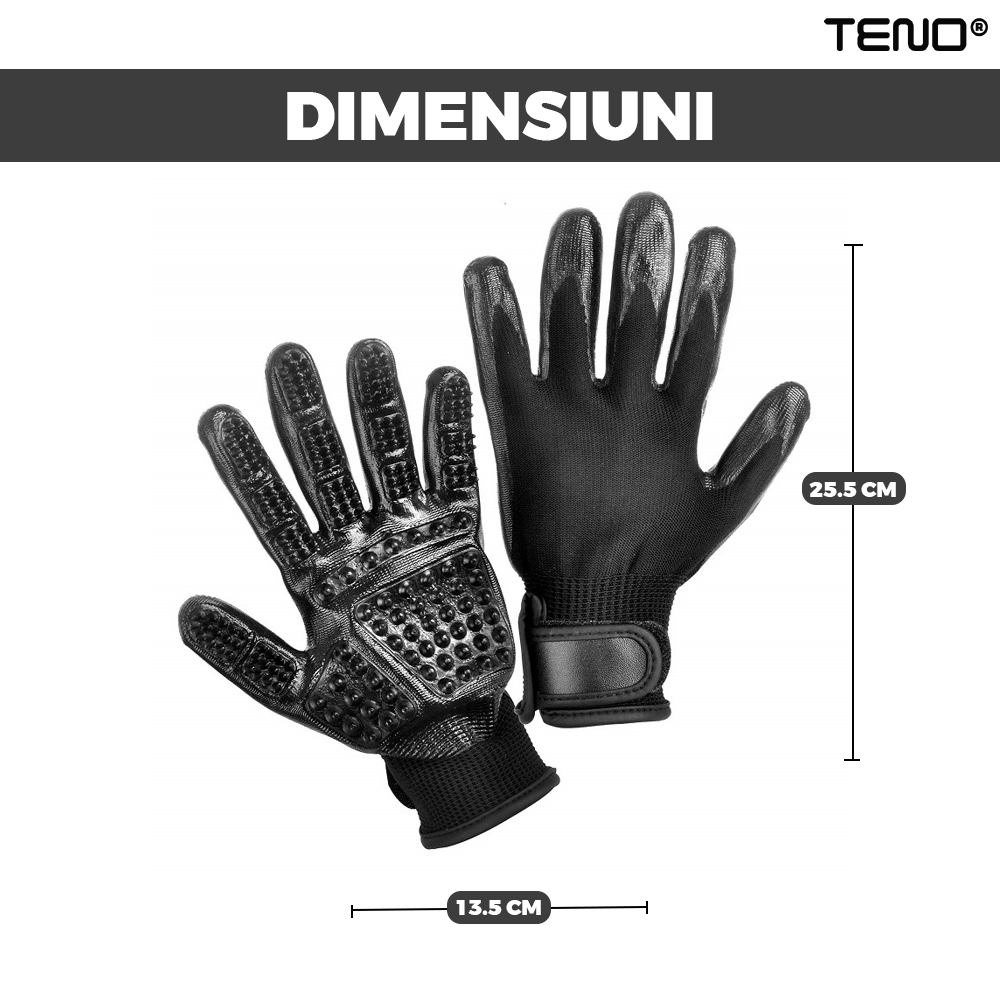 Manusile sunt echipate cu numeroase puncte fine pe suprafata lor, care sunt proiectate pentru a captura si indeparta parul, blana sau pielea moarta de pe animalul tau de companie. Cu fiecare miscare de periaj, aceste manusi eficiente aduna firele de par si le retin ferm. Acest lucru face curatarea mult mai usoara si mai eficienta, reducand riscul ca parul sa ajunga pe mobila sau in aer.