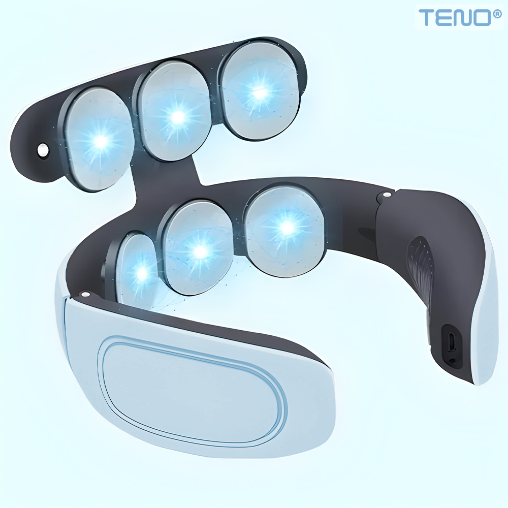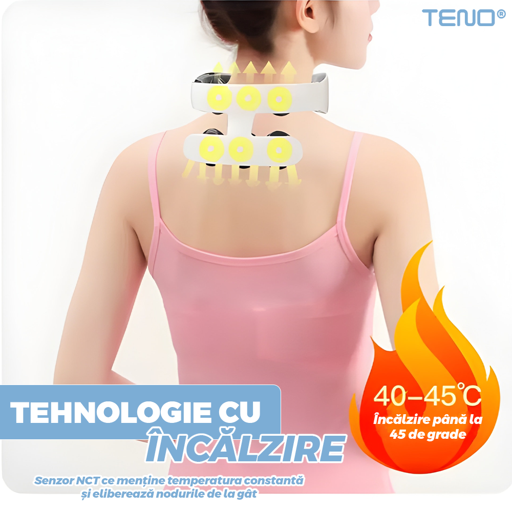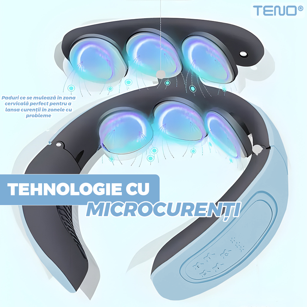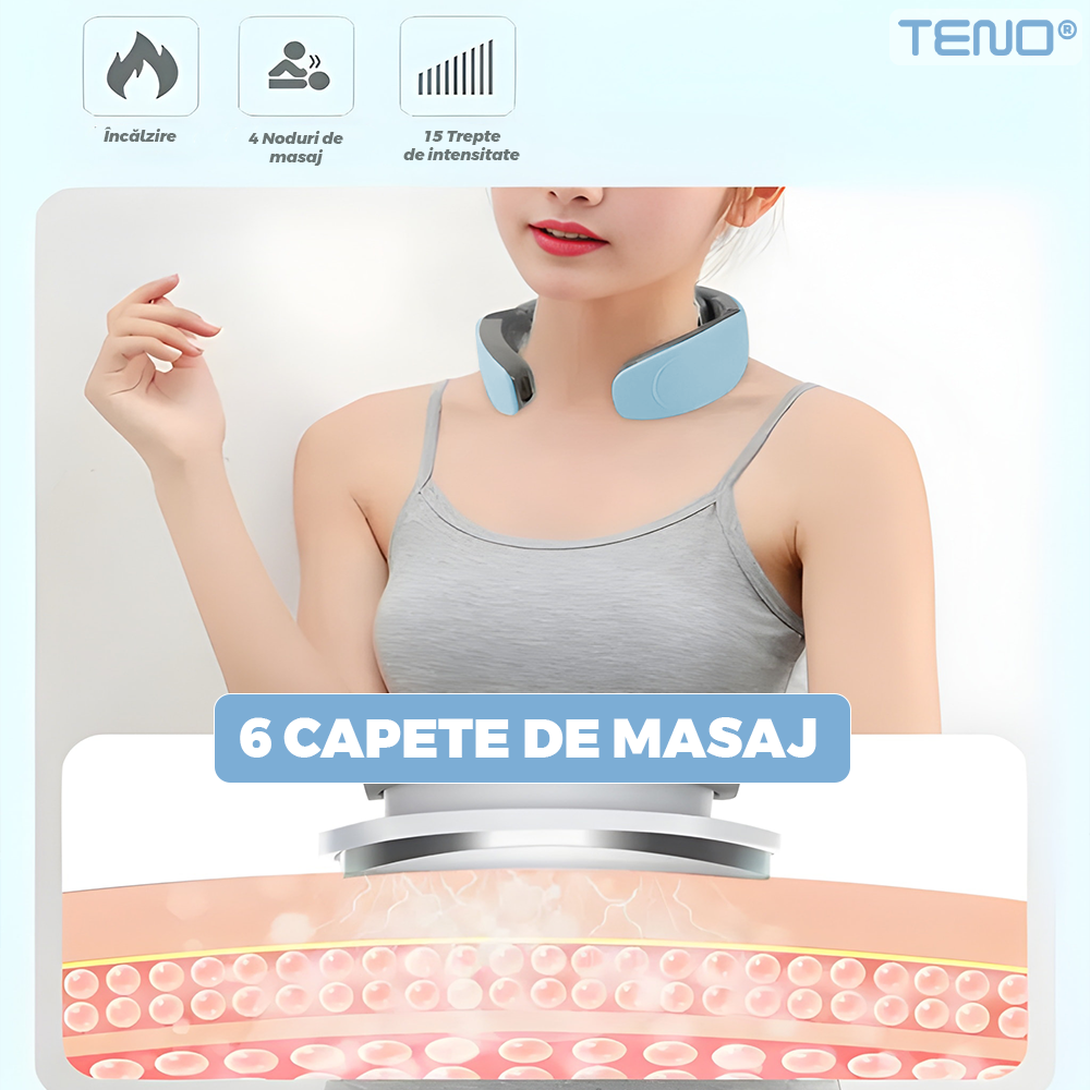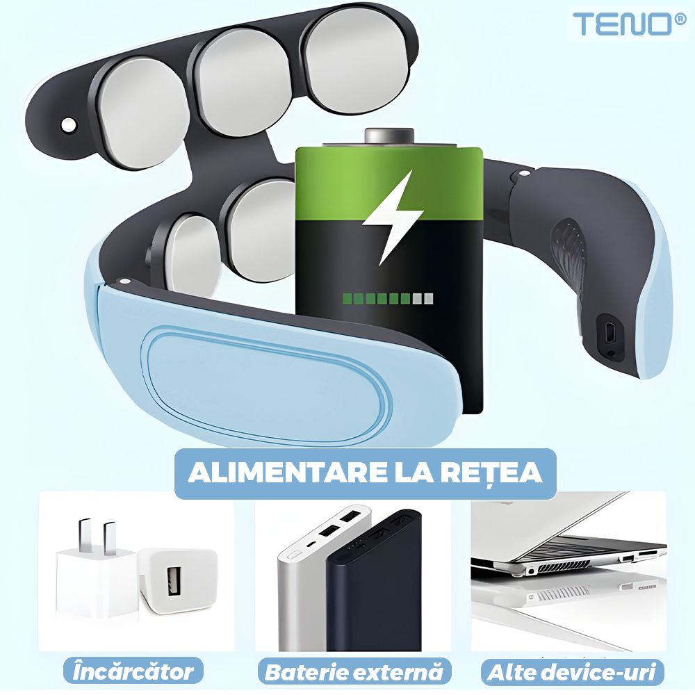 Aparat de Masaj Cervical Inteligent Teno2041, tehnologie cu incalzire, impulsuri electromagnetice, 6 capete, temperatura maxima 45° C, senzor NCT, relaxare si fizioterapie, albastru