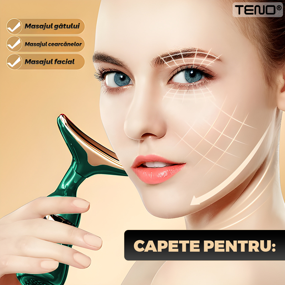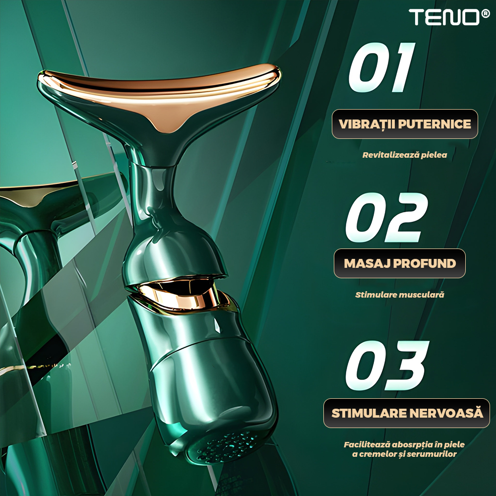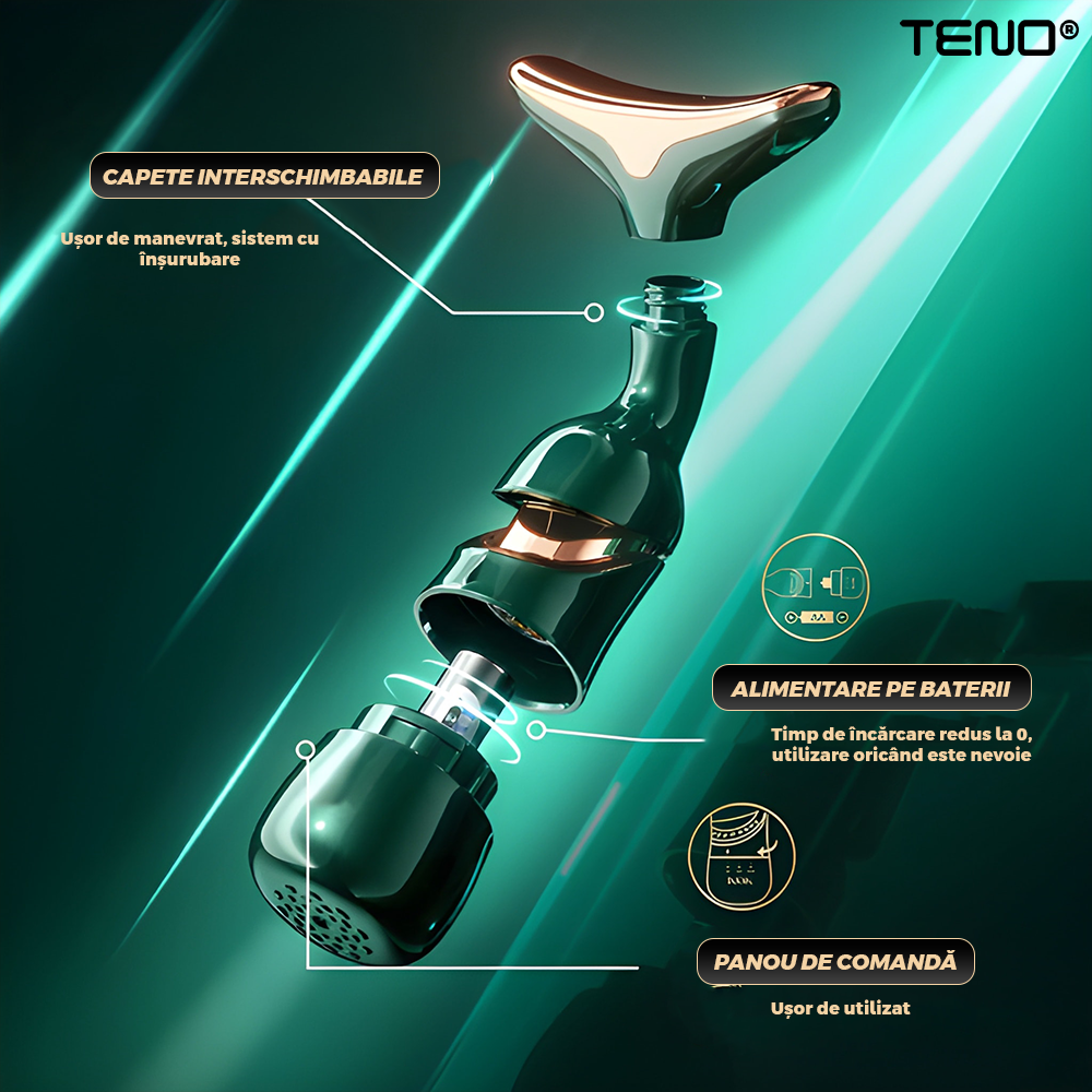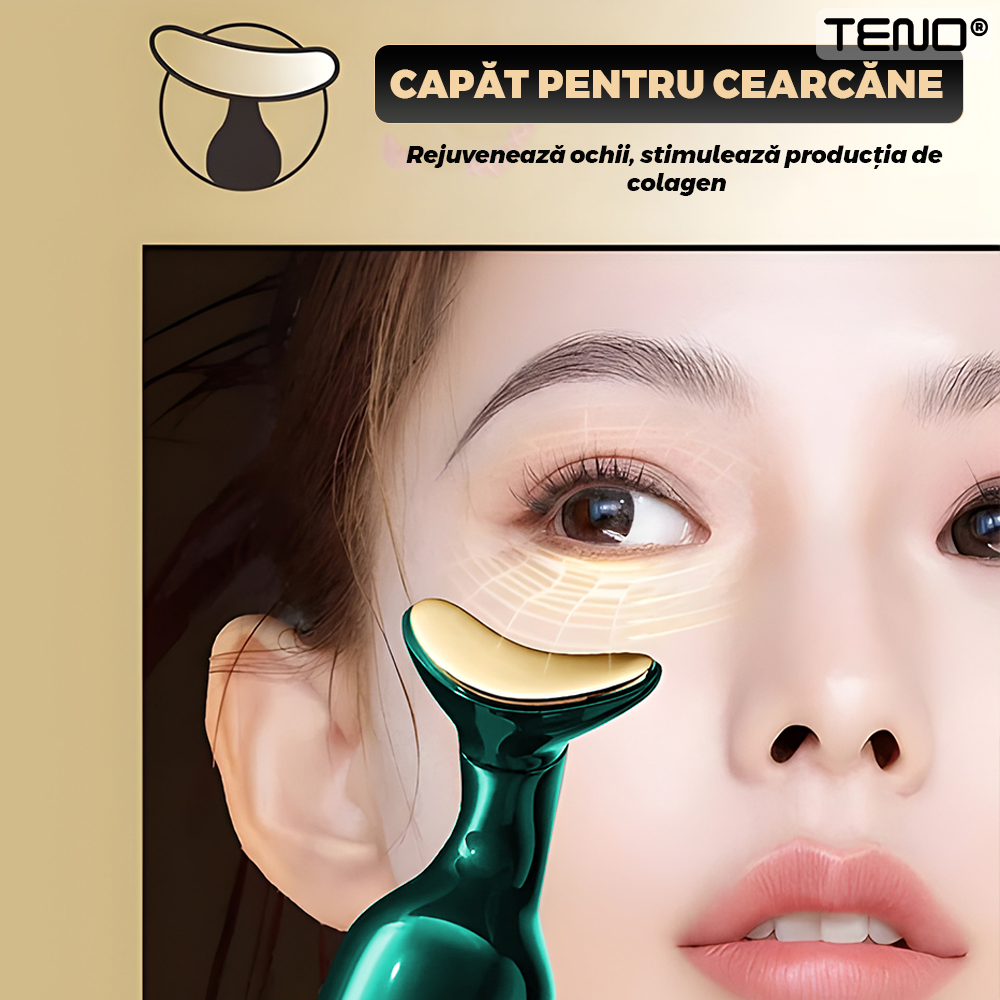 Vibratii puternice – Tehnologia de vibratii asigura stimularea eficienta a pielii, imbunatatind circulatia si contribuind la relaxarea muschilor faciali.