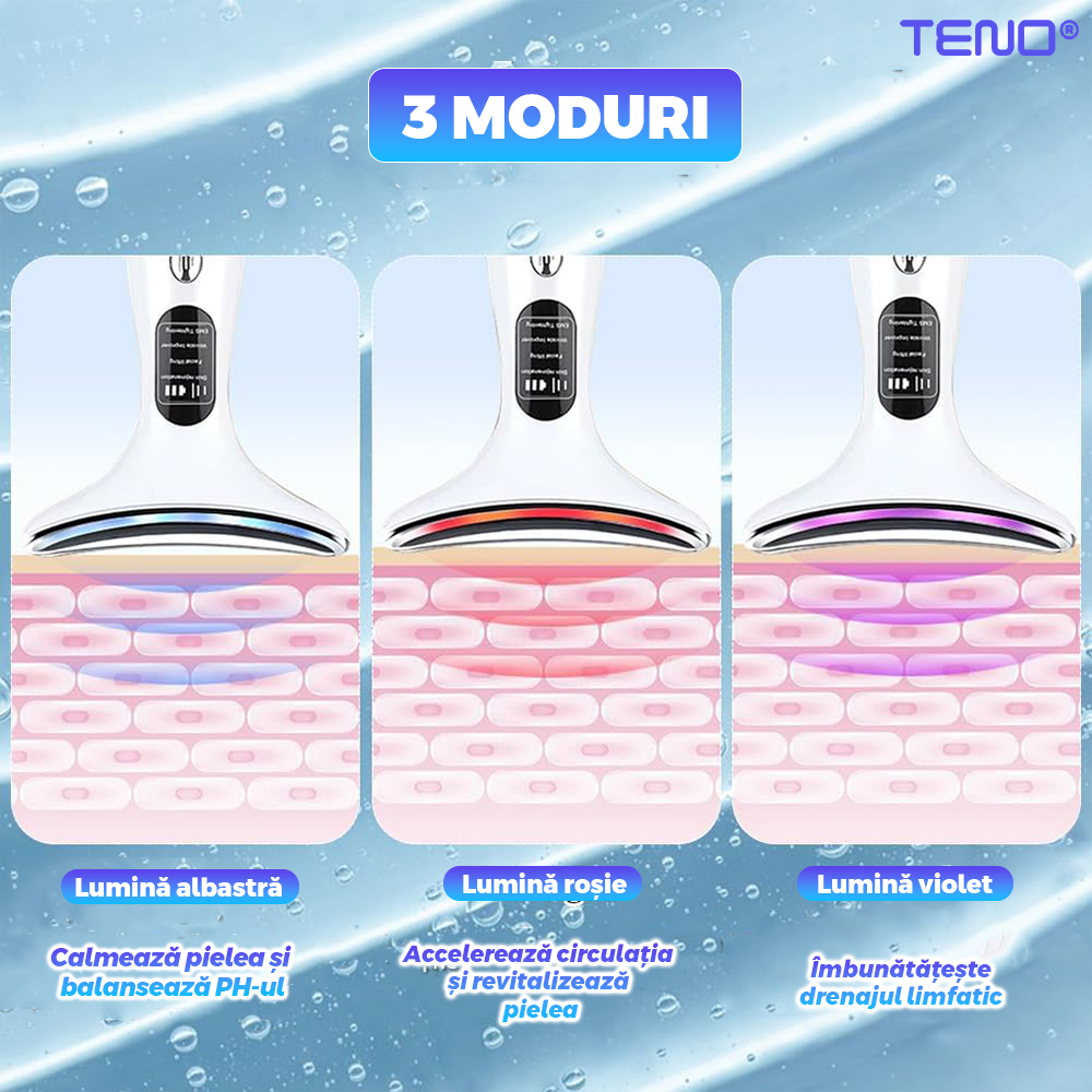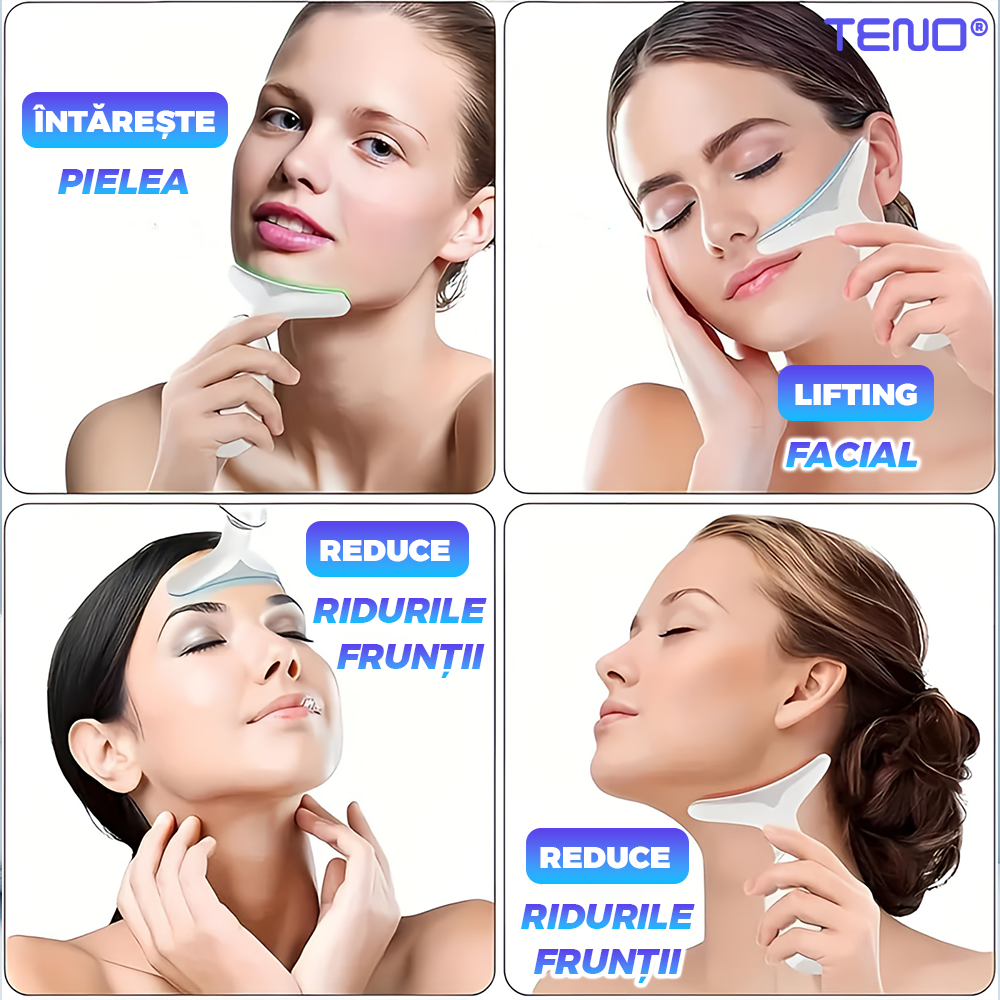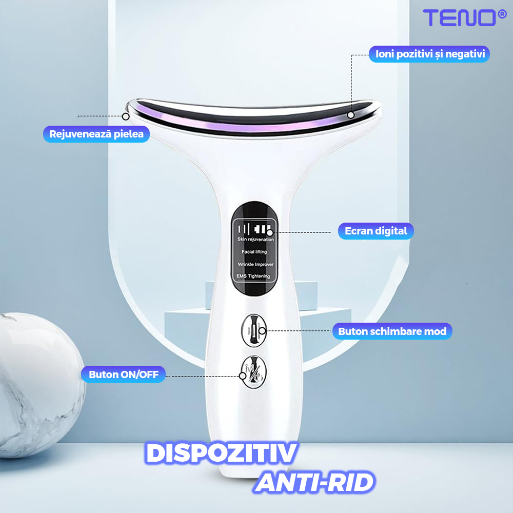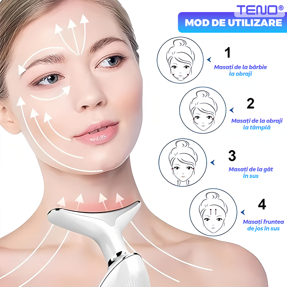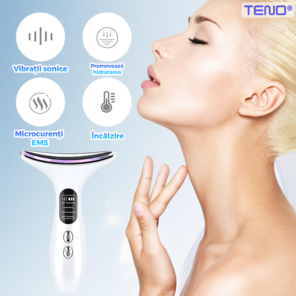 Dispozitiv facial Teno2488, pentru eliminarea ridurilor si ingrijirea zonei gatului, masaj si lifting, eficienta ridicata, autonomie crescuta, alb