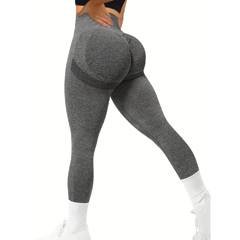 Colanti Fitness Dama Teno2299, lungi, talie inalta, efect de Push-Up, seamless, pentru sala/sport/alergare, gri