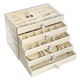 Cutie pentru Bijuterii Teno1924, organizare si depozitare, 3 casete, captuseala din catifea, carcasa transparenta, compartimente inele, bratari, lantisoare, 23.5 x 13.5 x 10.5 cm, bej