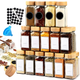 Set 12 Recipiente Organizatoare Condimente Teno1692, organizator de bucatarie, recipiente din sticla, palnie, perie de curatare, site, etichete si marker incluse, capac din acacia