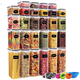Set 24 Recipiente pentru Depozitare Alimentara Teno1680, recipiente pentru bucatarie cu capac, etanse, design minimalist, anti-scurgere, stacabile, fara BPA, pentru frigider/dulap, diverse dimensiuni, etichete si lingurite incluse, transparent