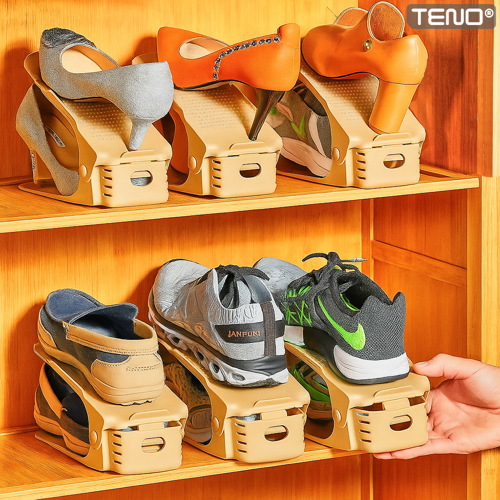 Un set de organizatoare de pantofi reglabile pe 3 inaltimi, o solutie ingenioasa si practica pentru a-ti pastra pantofii in ordine si pentru a economisi spatiu in dulapurile tale. Fie ca esti un pasionat al modei sau pur si simplu iti doresti sa-ti pastrezi pantofii in stare perfecta, aceste organizatoare sunt alegerea ideala.