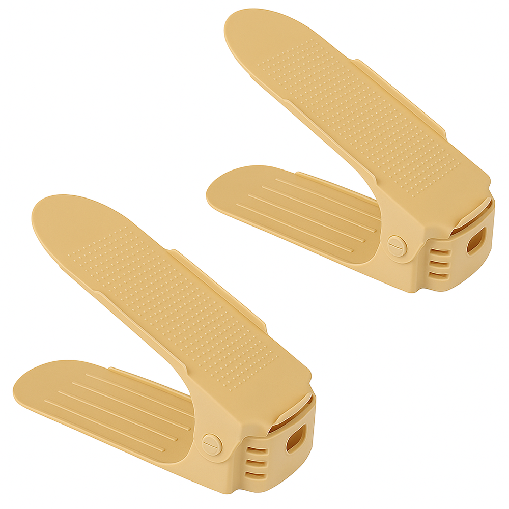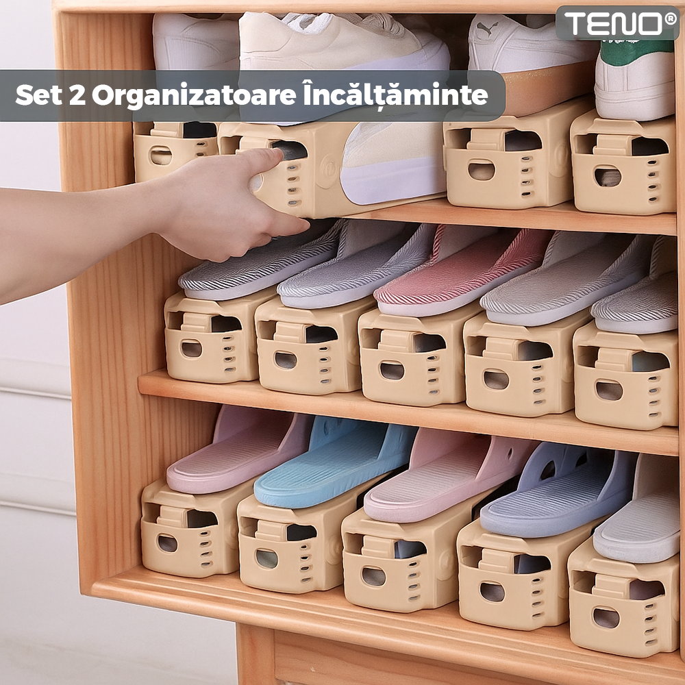 Set 2 Organizatoare Incaltaminte Teno2515, 3 niveluri de reglare pe inaltime, suport, economisire spatiu, materiale calitative, universale, bej