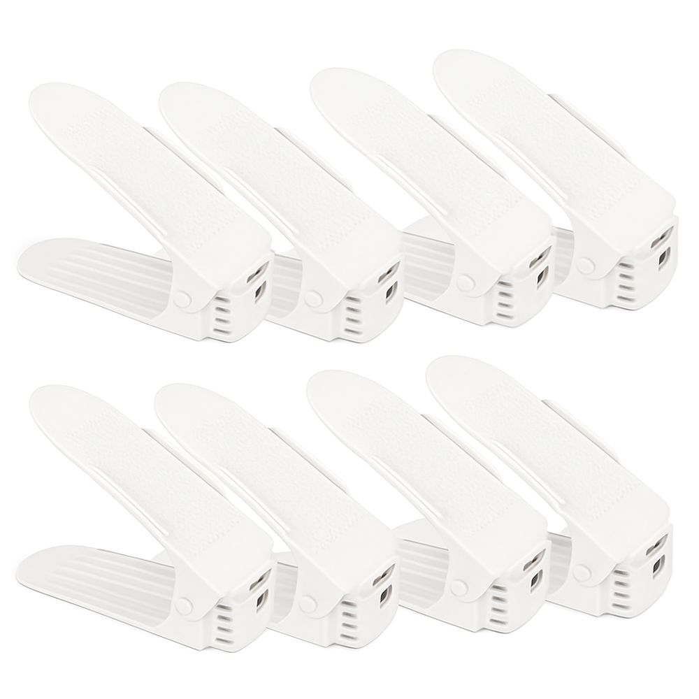 Set 8 Organizatoare Incaltaminte Teno2523, 3 niveluri de reglare pe inaltime, suport, economisire spatiu, materiale calitative, universale, alb