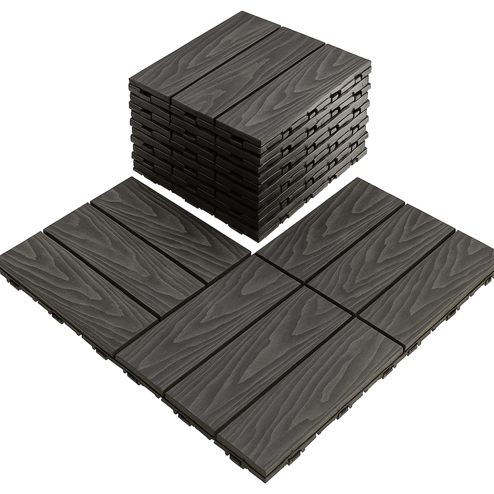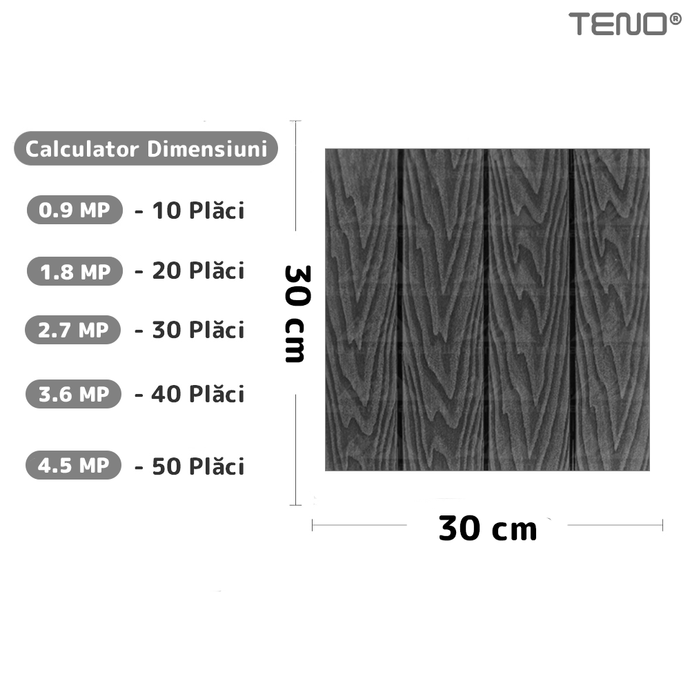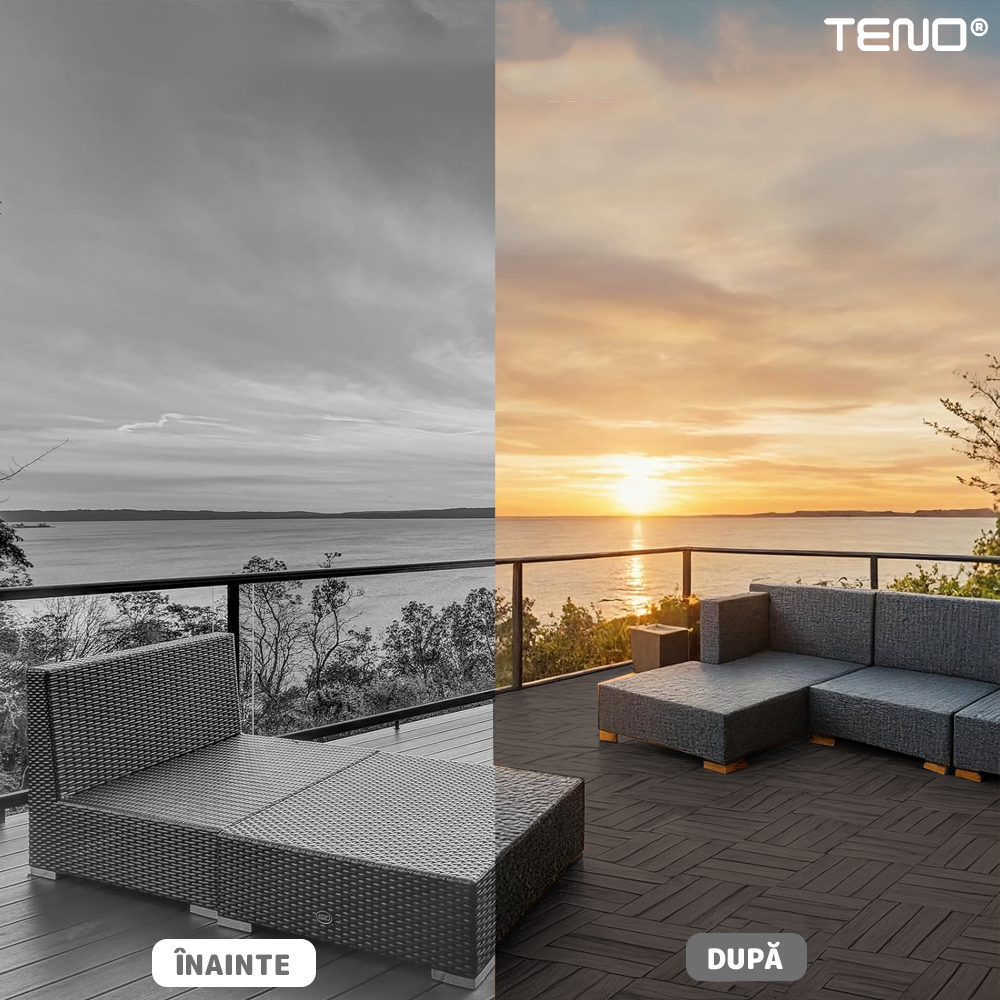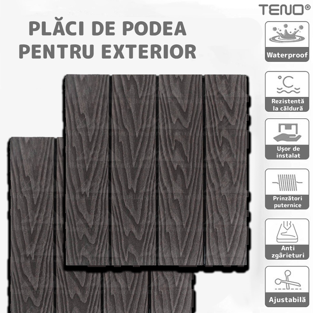 Set 20 Placi pentru Terasa Teno2461, tip mozaic din lemn, durabile, prindere prin imbinare, PVC, 30 x 30 cm, 1.8 m²/box, maro ciocolatiu
