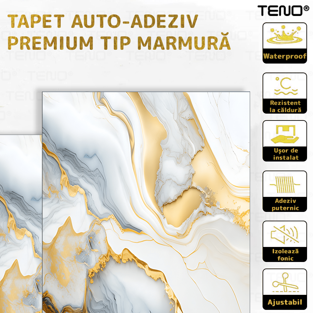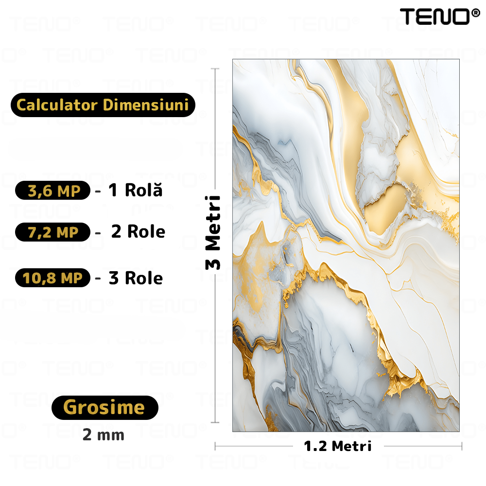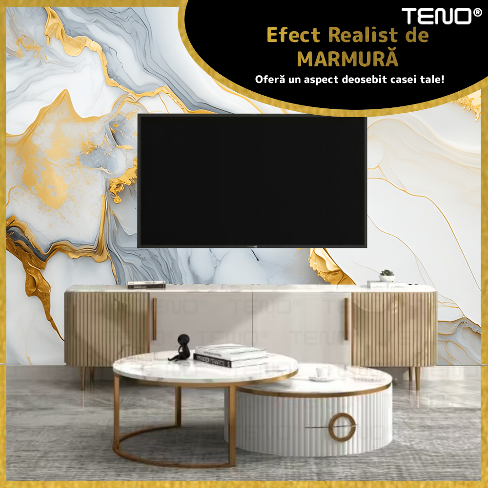 Rola Tapet 3D Teno2421, model marmura, suprafata acoperire 3.6 mp, autoadeziva, waterproof, usor de montat, design modern, 3 x 1.2 m, albastru