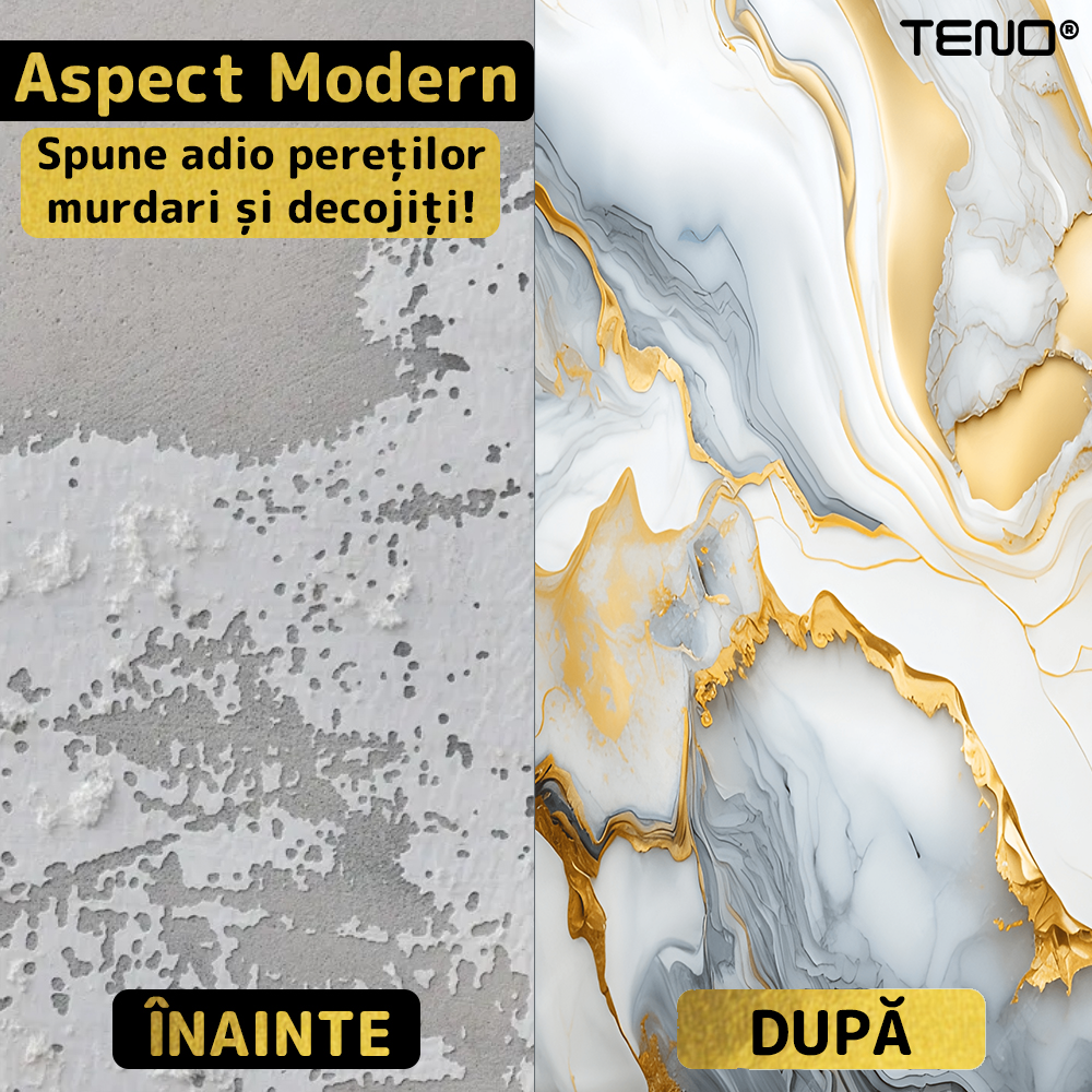 Finisajul cu efect realist de marmura ofera eleganta si profunzime vizuala, imitand fidel textura si venatiile naturale ale pietrei, fara costurile si dificultatile marmurei reale.