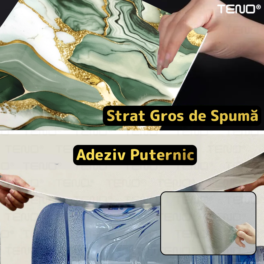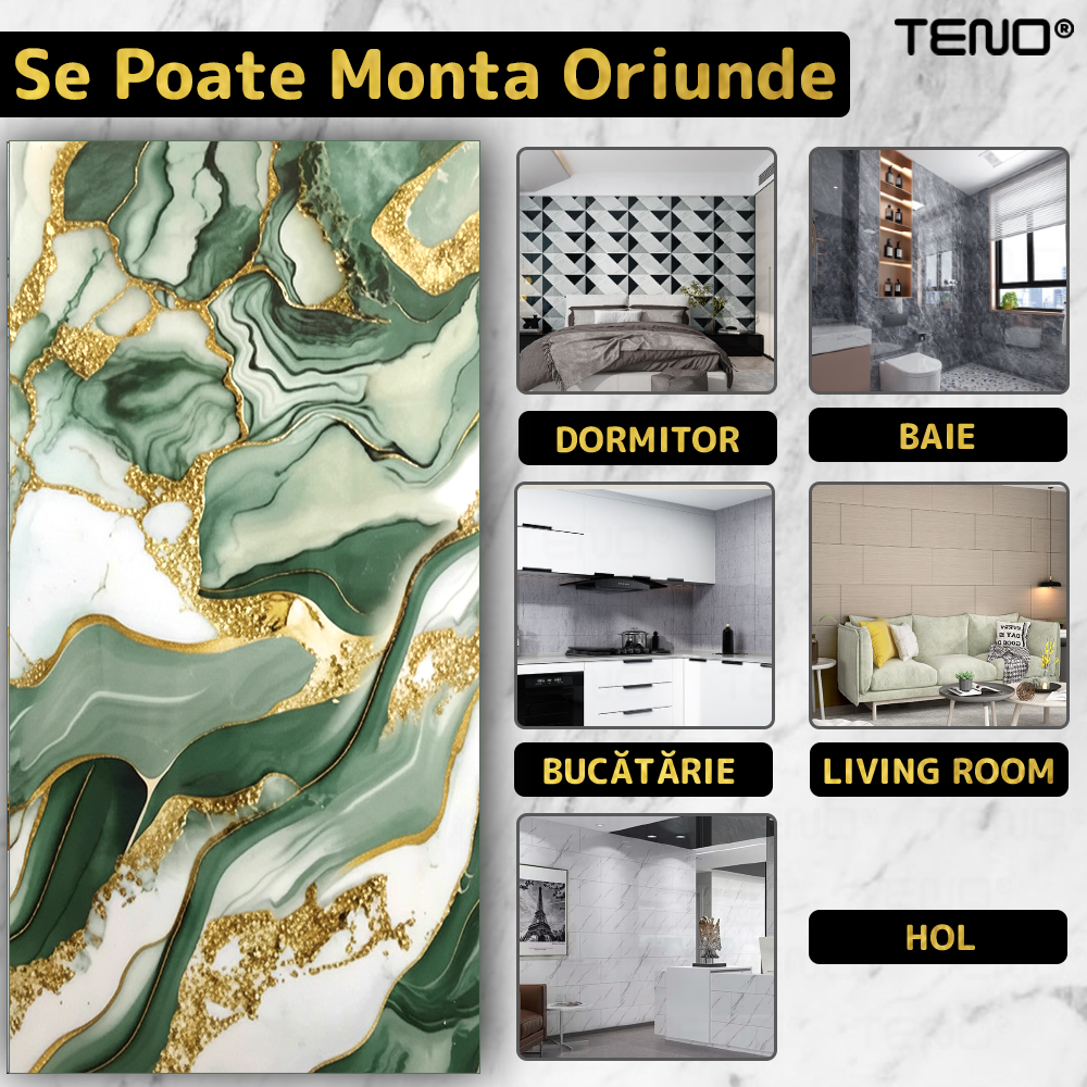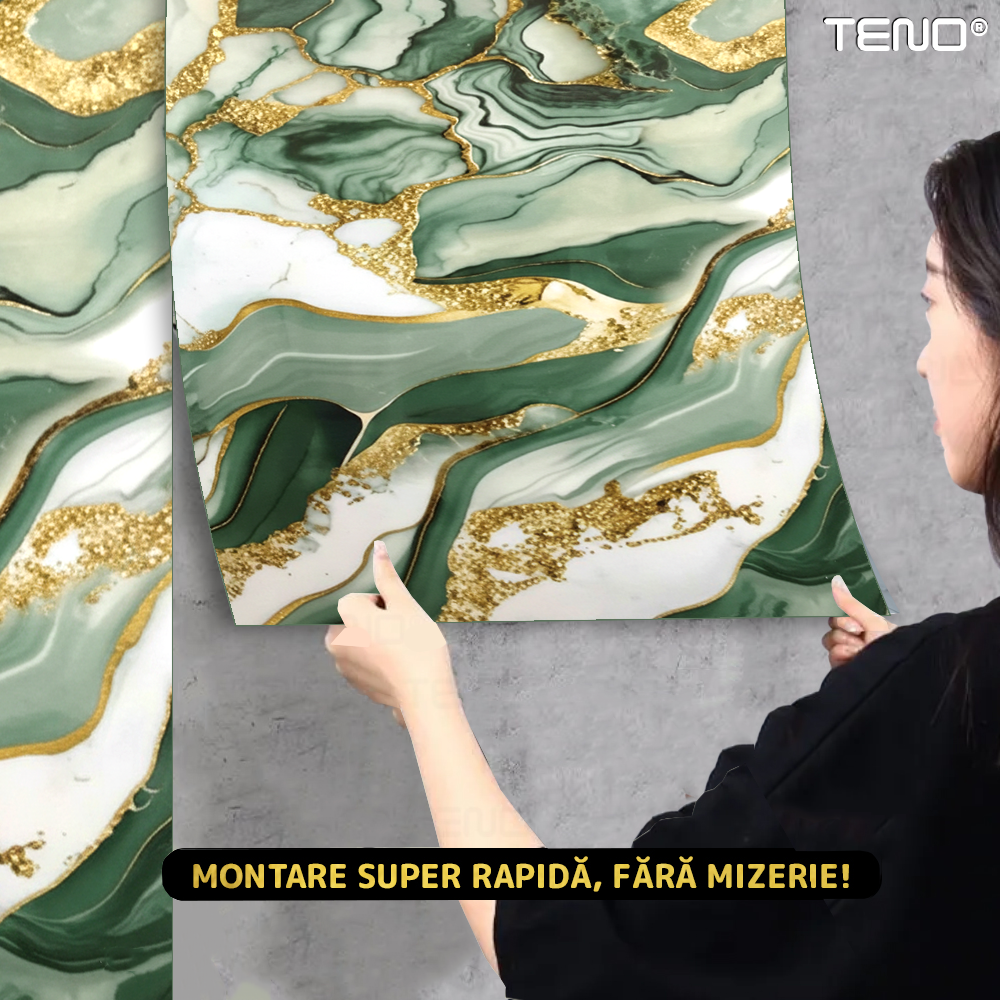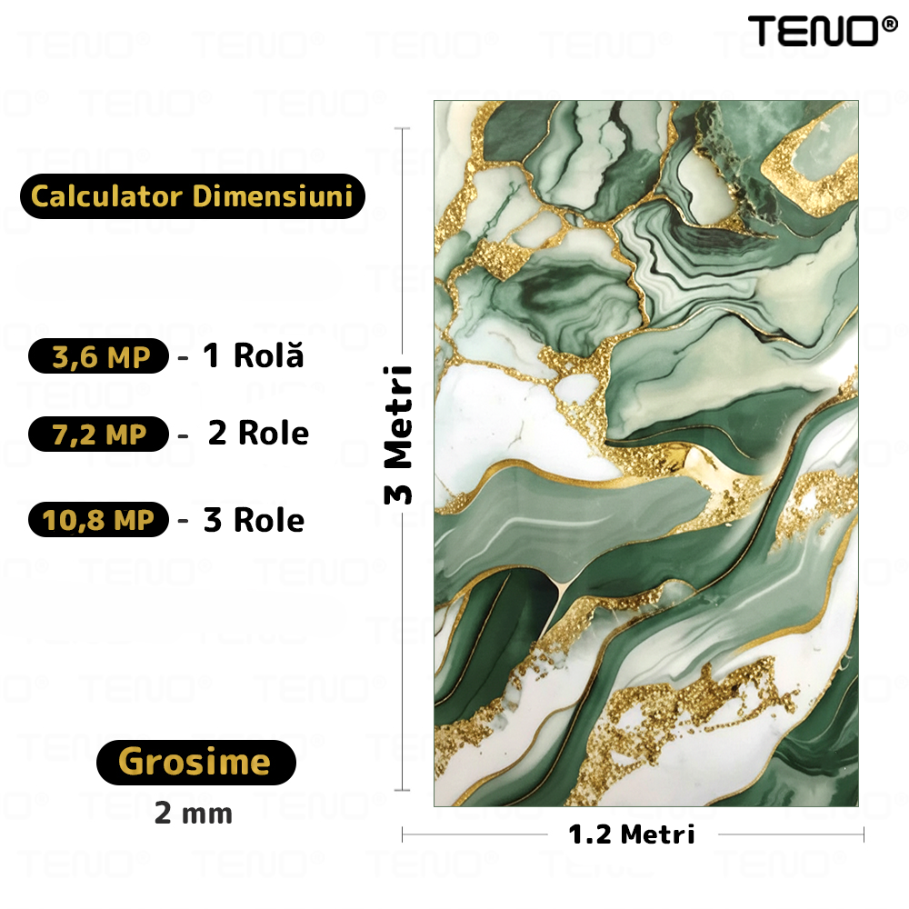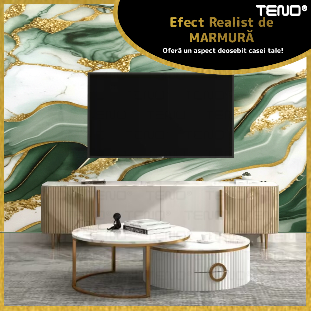 Rola Tapet 3D Teno2422, model marmura, suprafata acoperire 3.6 mp, autoadeziva, waterproof, usor de montat, design modern, 3 x 1.2 m, verde