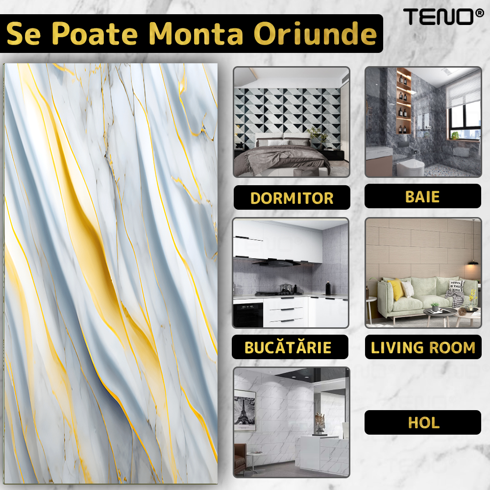 Tapetul este conceput pentru montare rapida si simpla, fara unelte speciale sau experienta anterioara, fiind ideal pentru proiecte DIY si reamenajari rapide.