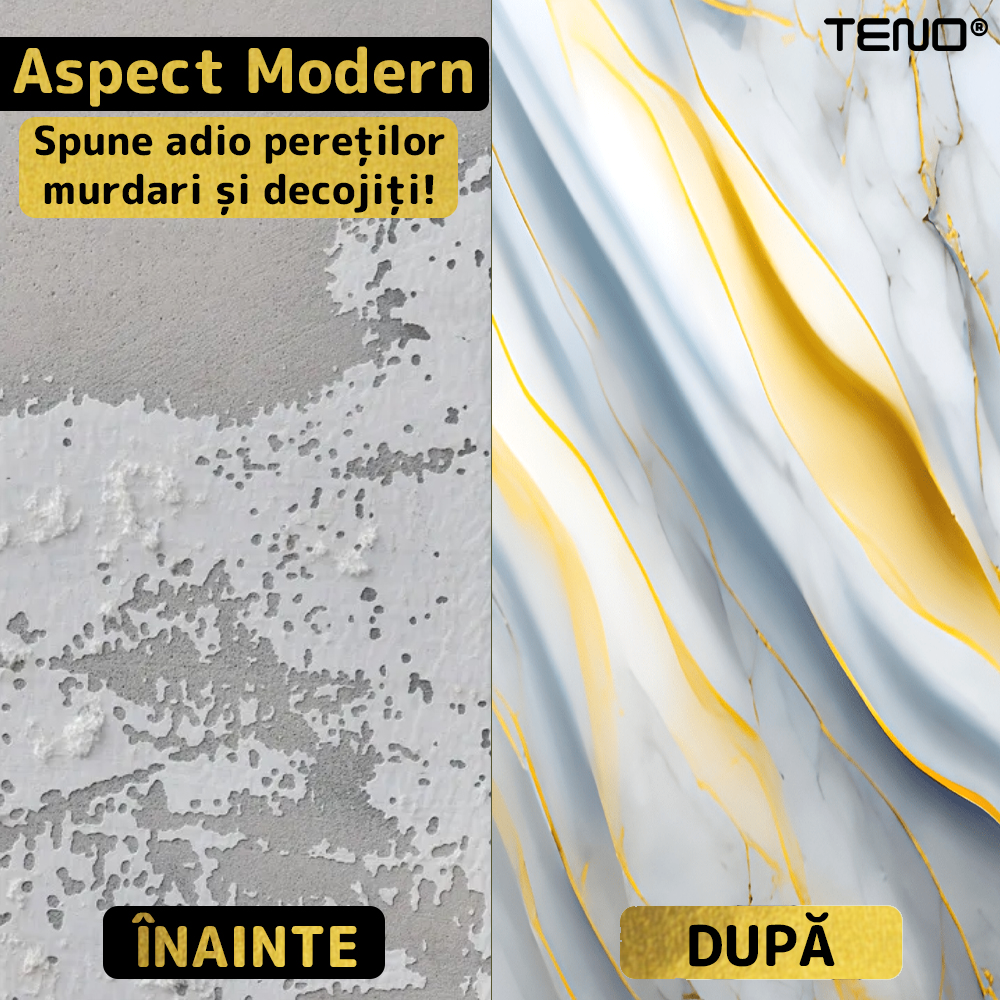 Finisajul cu efect realist de marmura ofera eleganta si profunzime vizuala, imitand fidel textura si venatiile naturale ale pietrei, fara costurile si dificultatile marmurei reale.