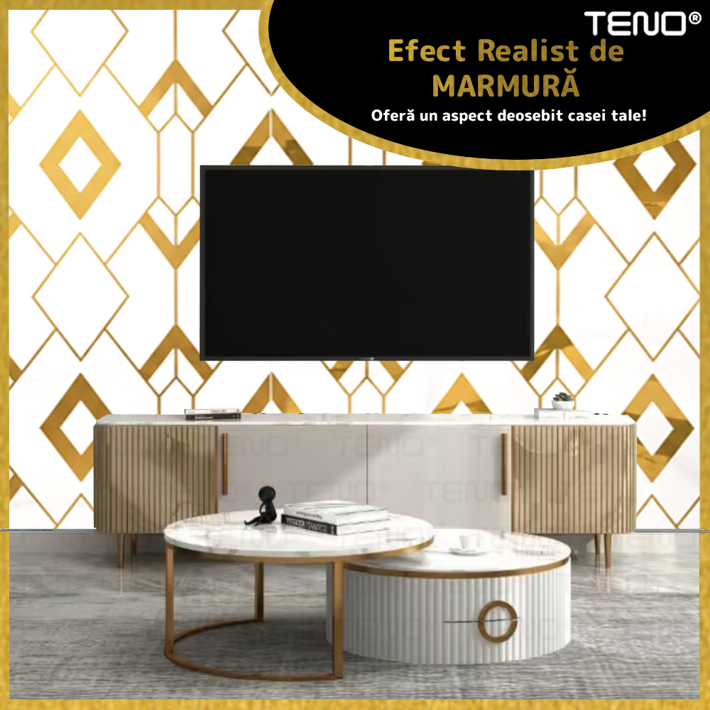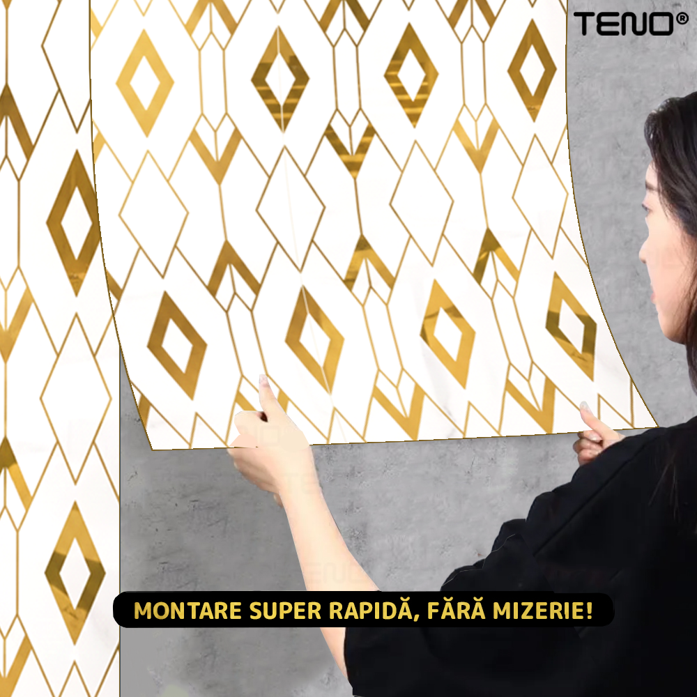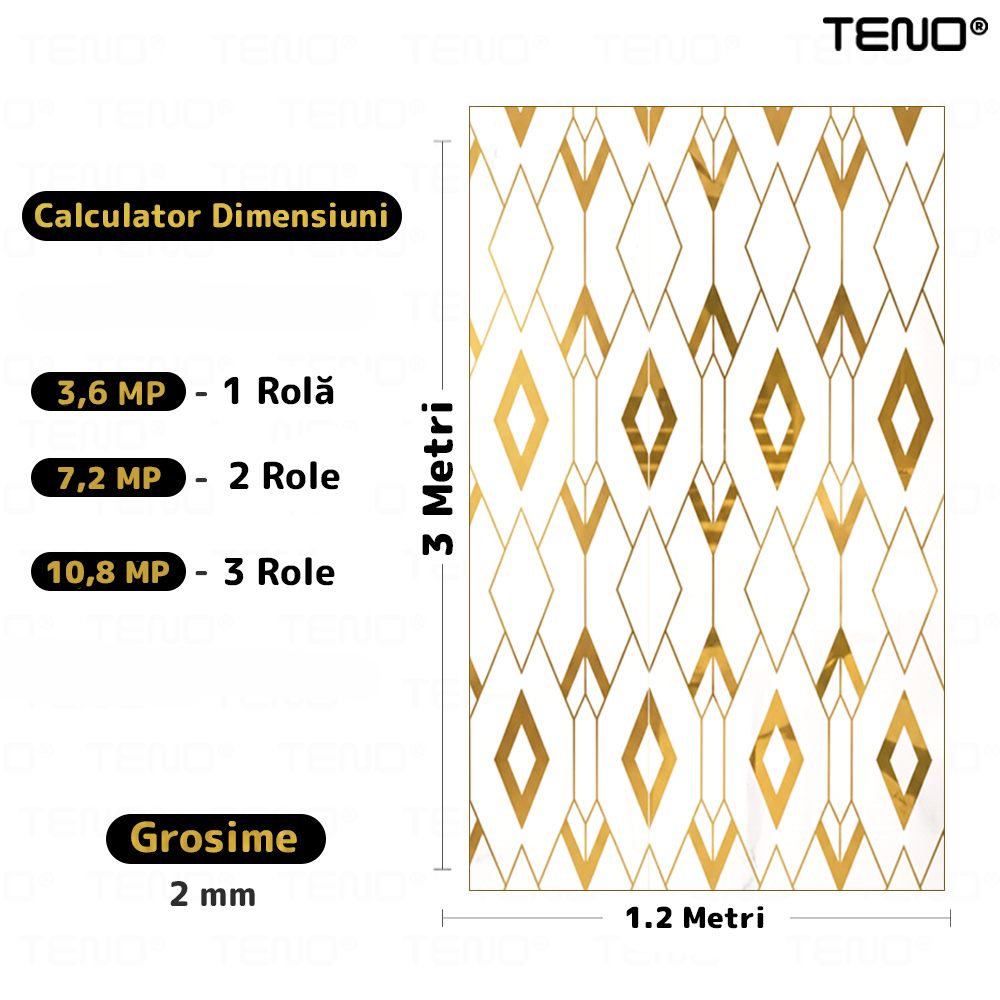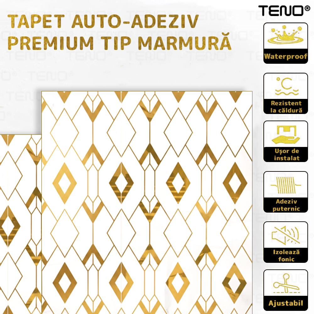Rola Tapet 3D Teno2428, model romburi, suprafata acoperire 3.6 mp, autoadeziva, waterproof, usor de montat, design modern, 3 x 1.2 m, auriu