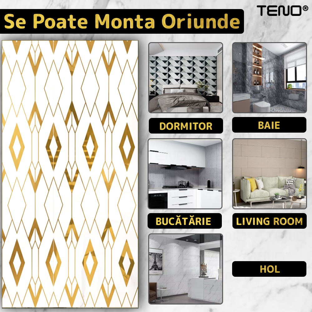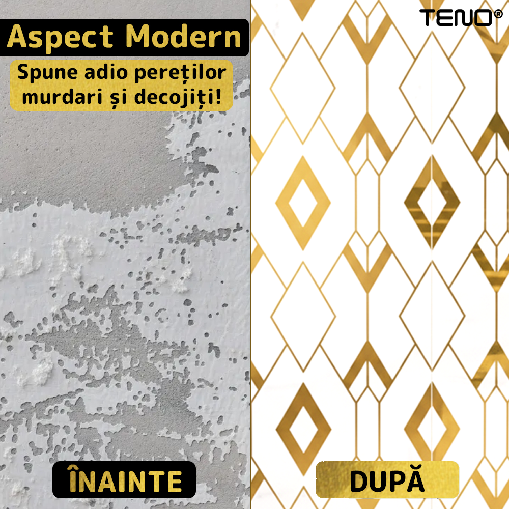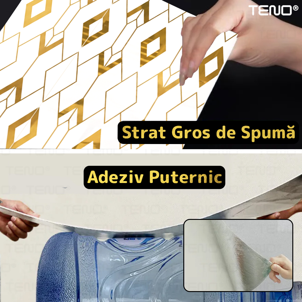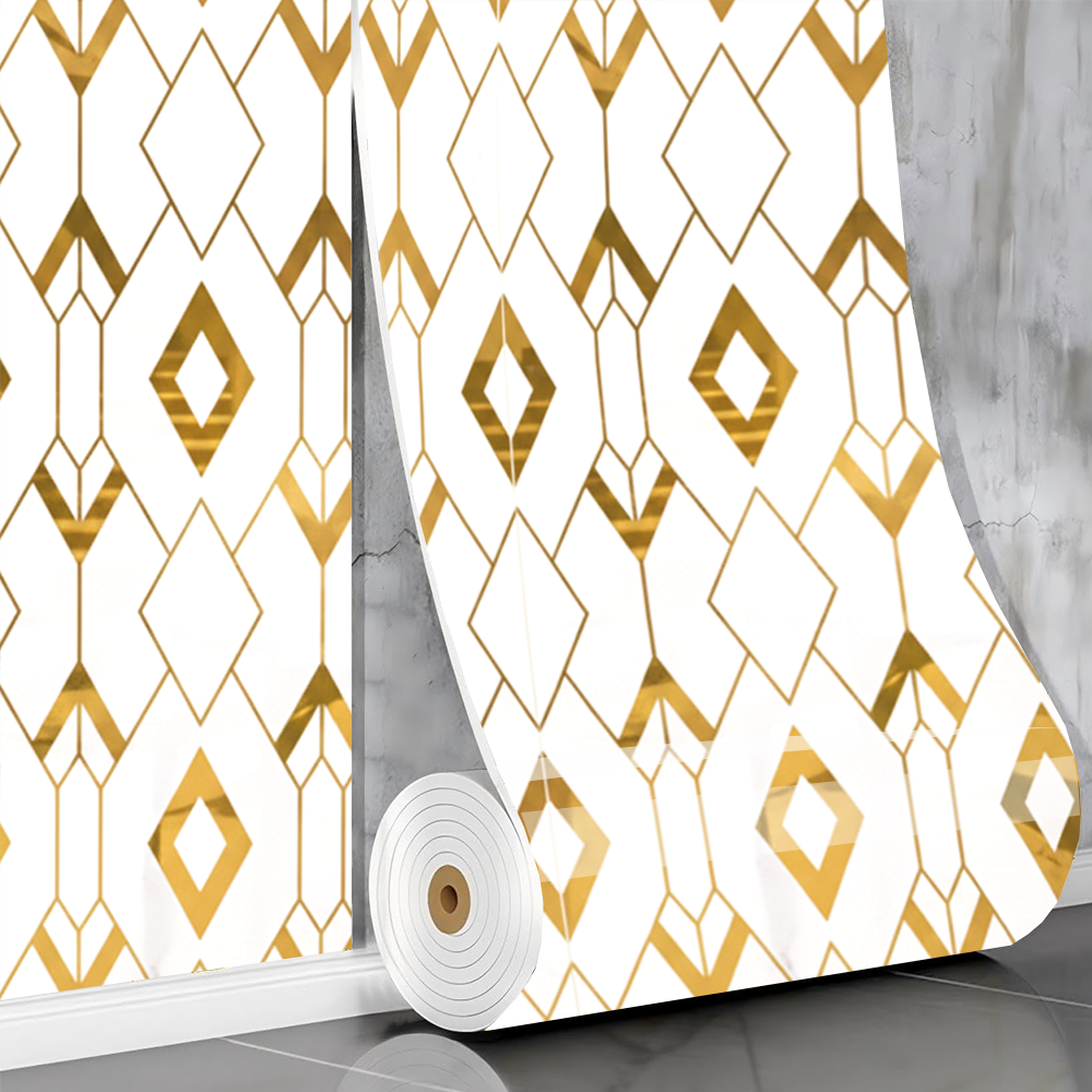 Rola Tapet 3D Teno2428, model romburi, suprafata acoperire 3.6 mp, autoadeziva, waterproof, usor de montat, design modern, 3 x 1.2 m, auriu