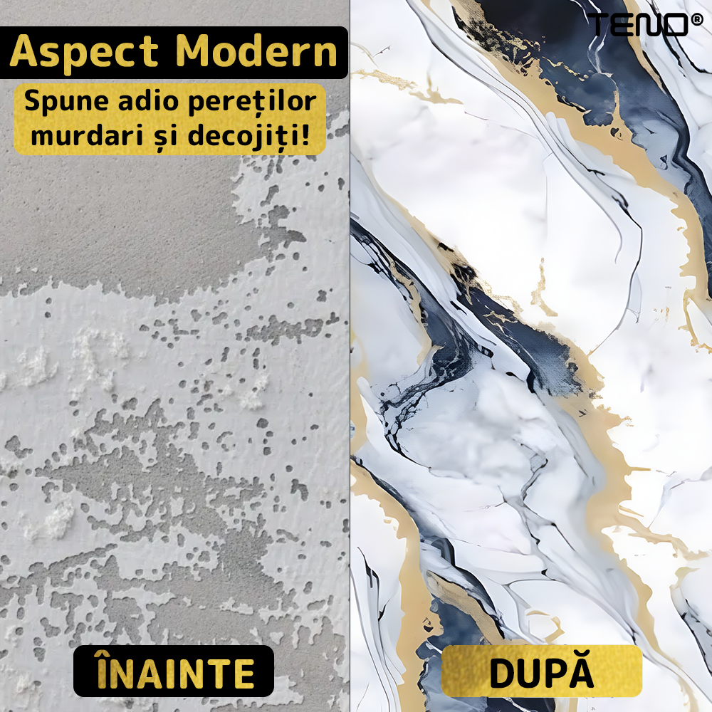 Finisajul cu efect realist de marmura ofera eleganta si profunzime vizuala, imitand fidel textura si venatiile naturale ale pietrei, fara costurile si dificultatile marmurei reale.