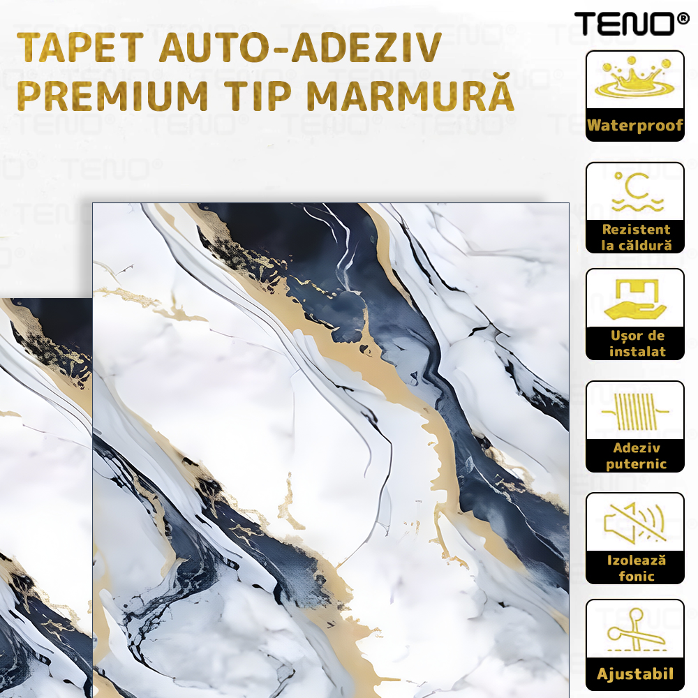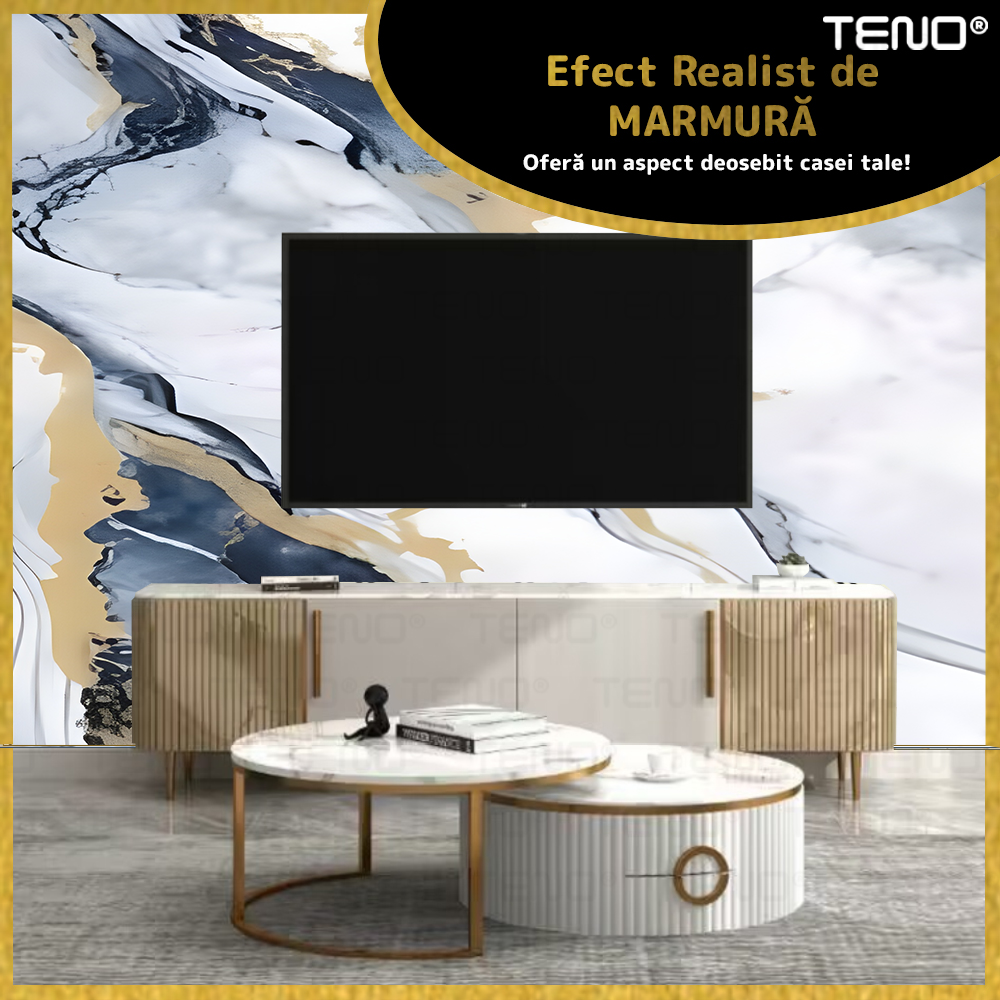Rola Tapet 3D Teno2430, model marmura, suprafata acoperire 3.6 mp, autoadeziva, waterproof, usor de montat, design modern, 3 x 1.2 m, albastru deschis