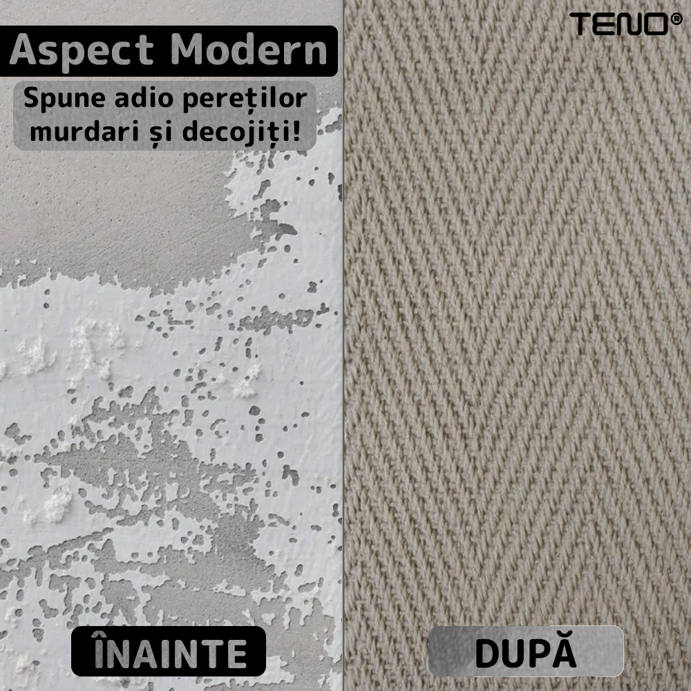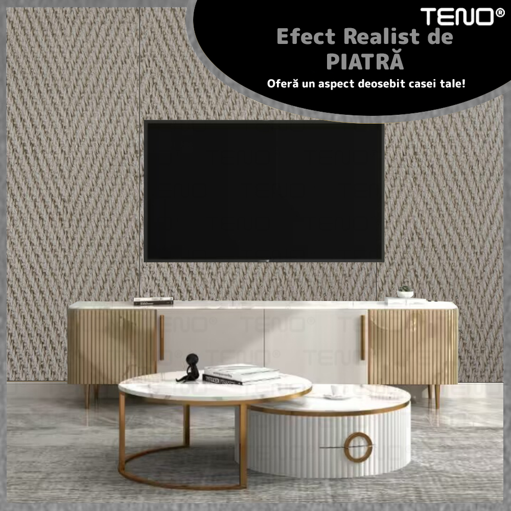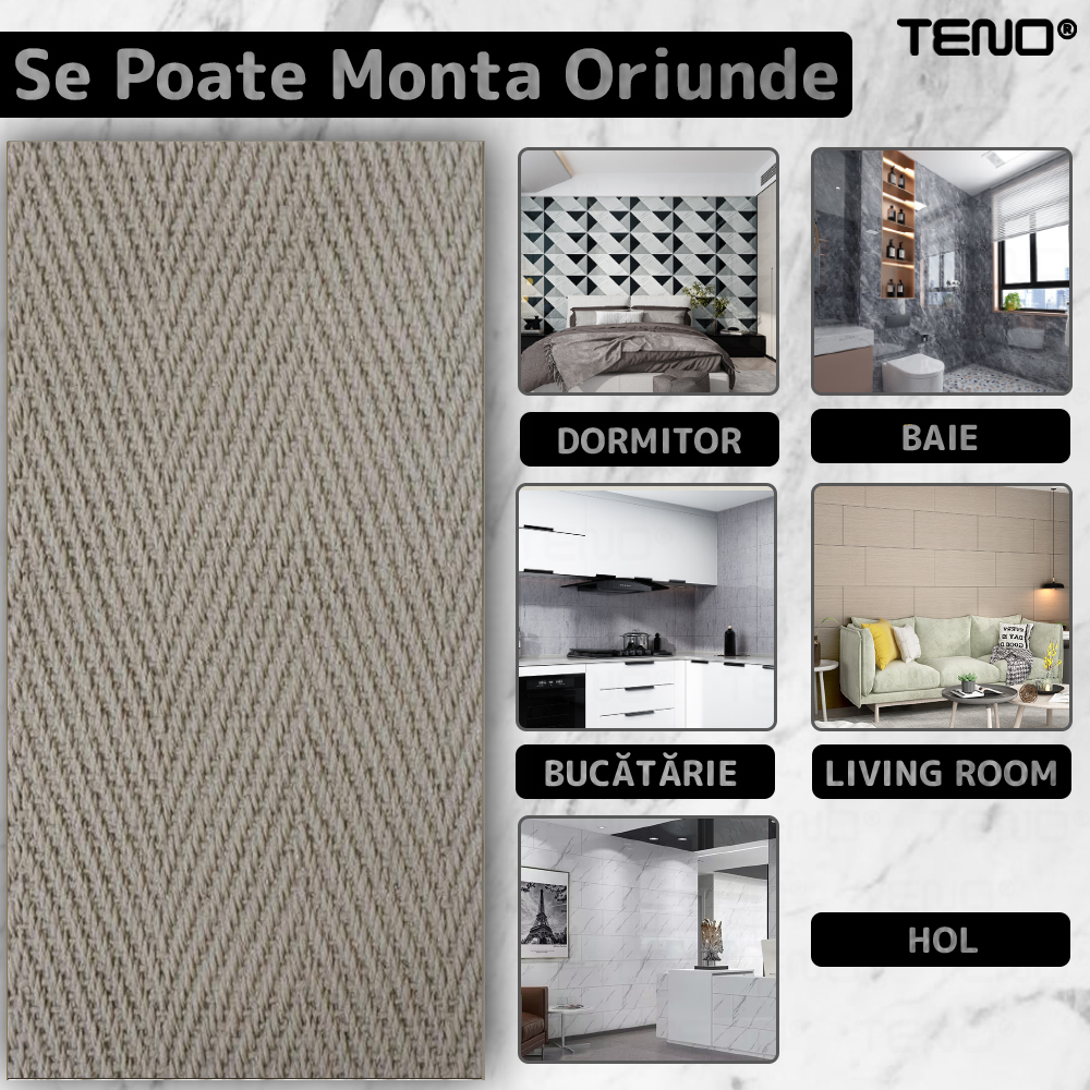 Set 10x Tapet 3D Teno2450, Imitatie Tesatura, suprafata acoperire 7.2 mp, autoadeziv, waterproof, usor de montat, design modern, 120 x 60 cm, gri murdar