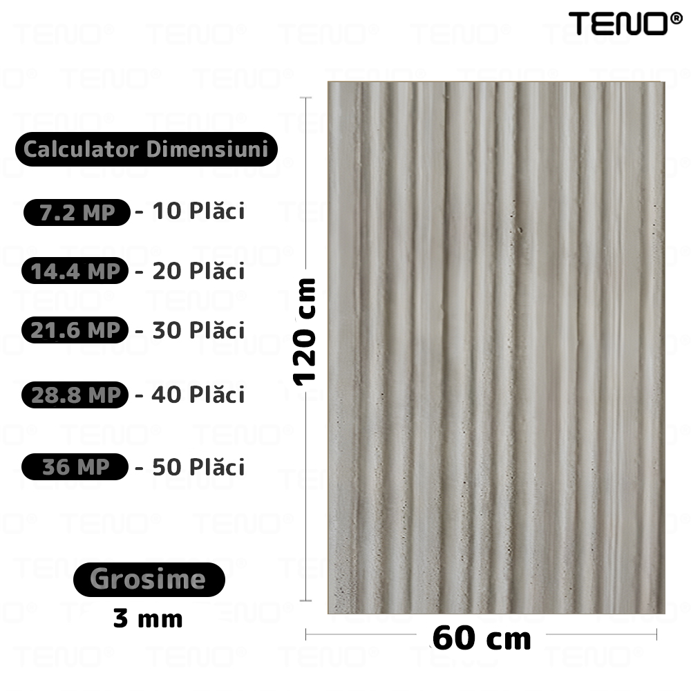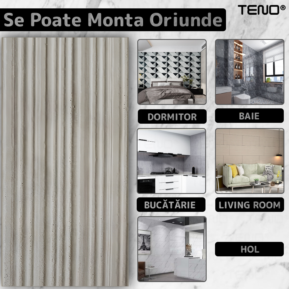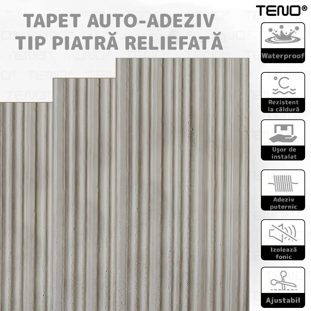 Set 10x Tapet 3D Teno2456, Model Piatra Dungata, suprafata acoperire 7.2 mp, autoadeziv, waterproof, usor de montat, design modern, 120 x 60 cm, gri murdar