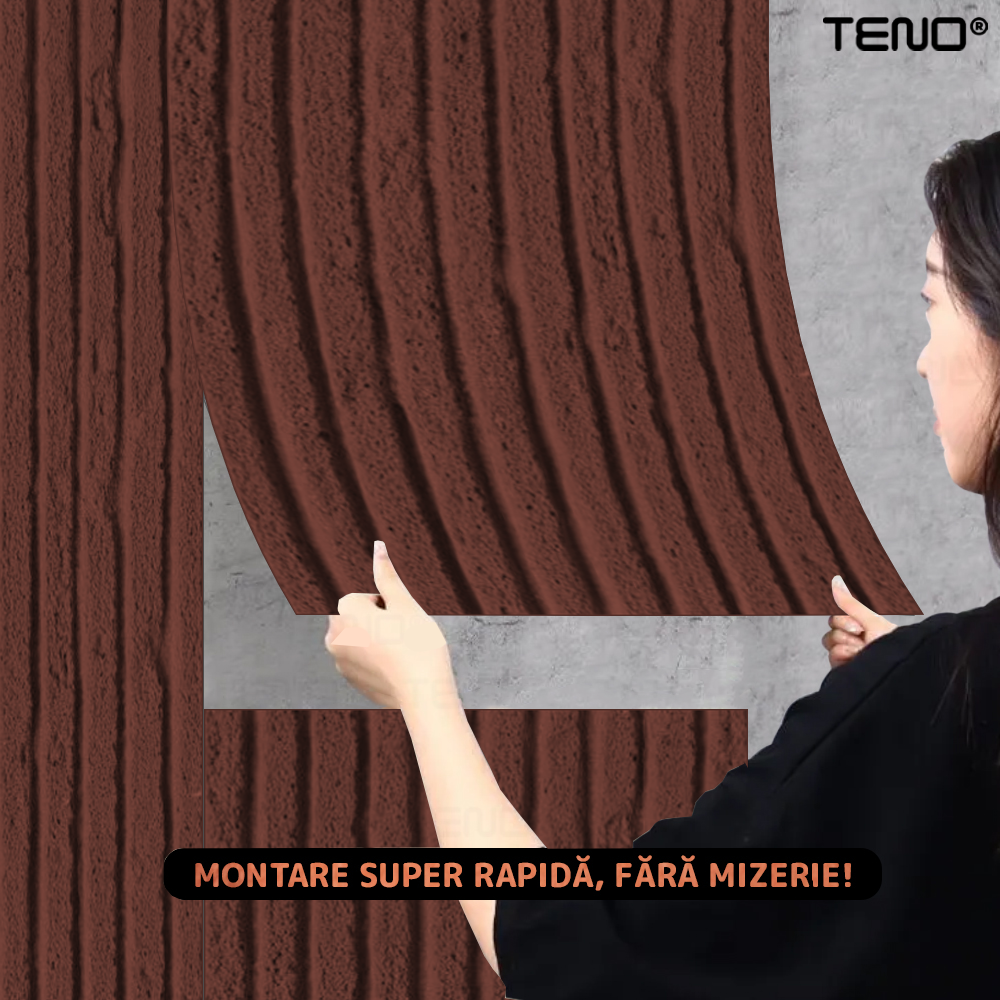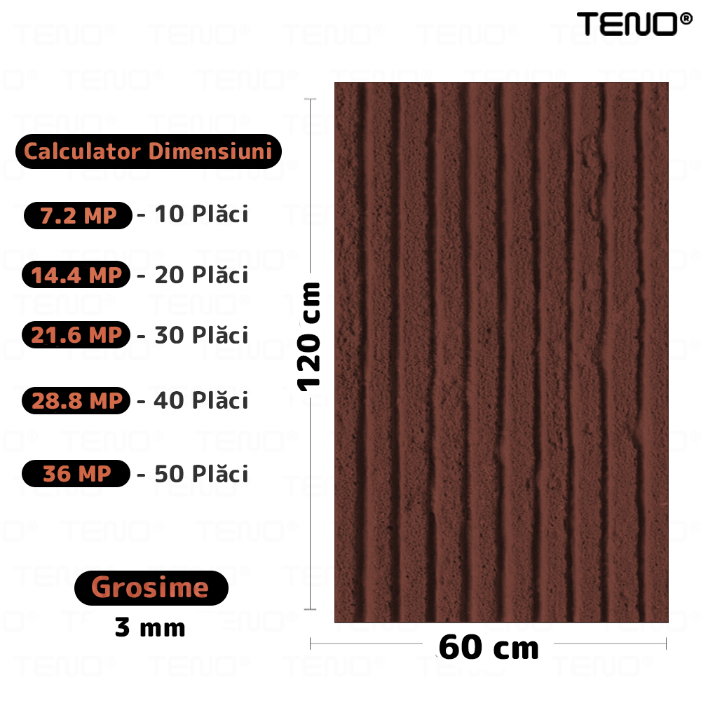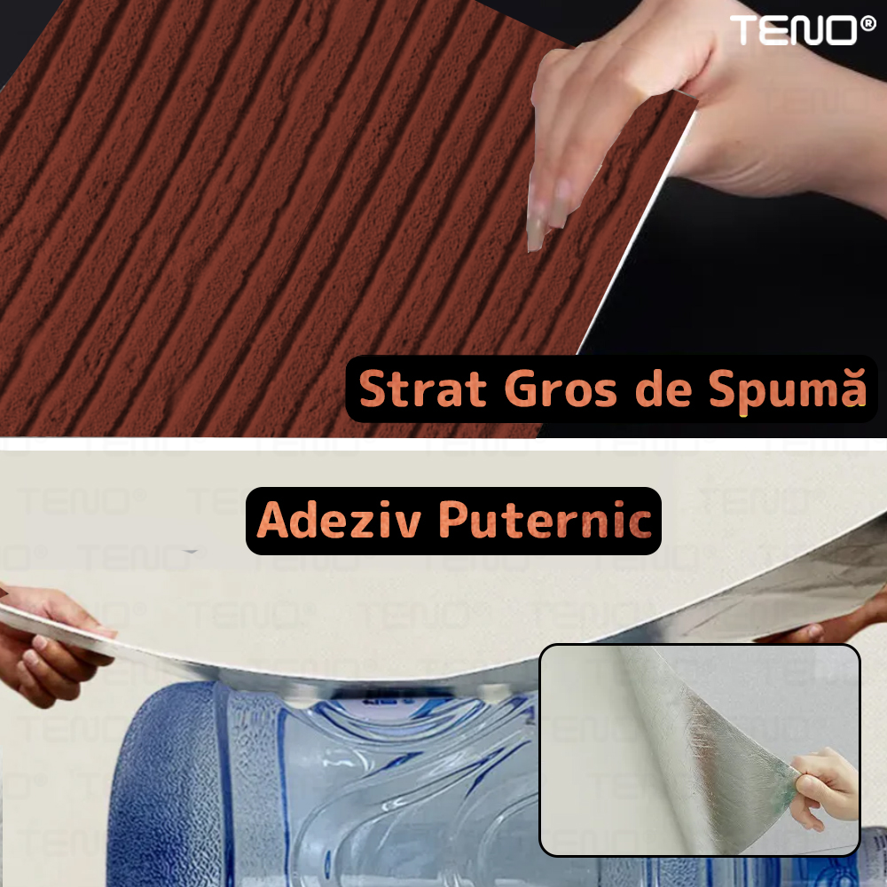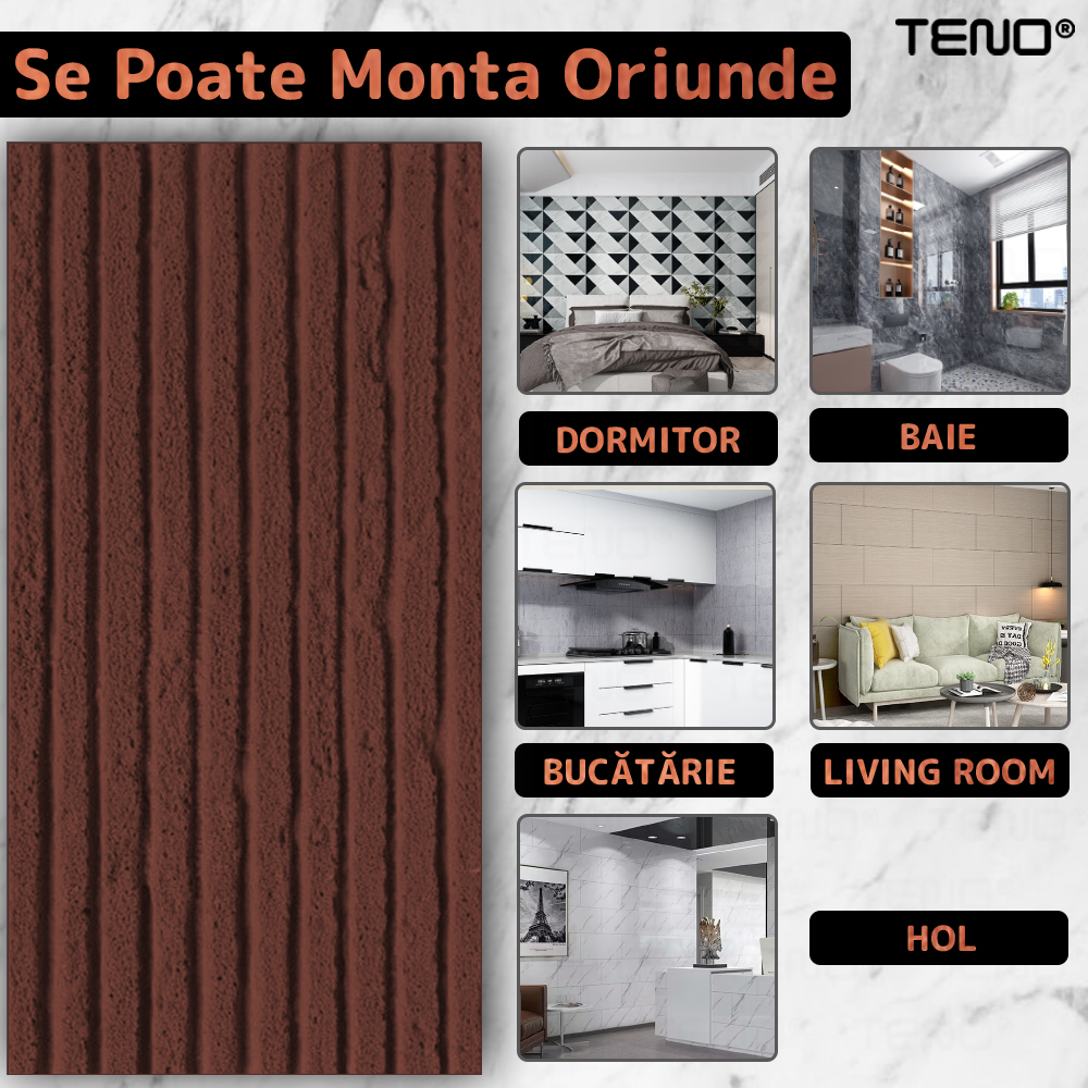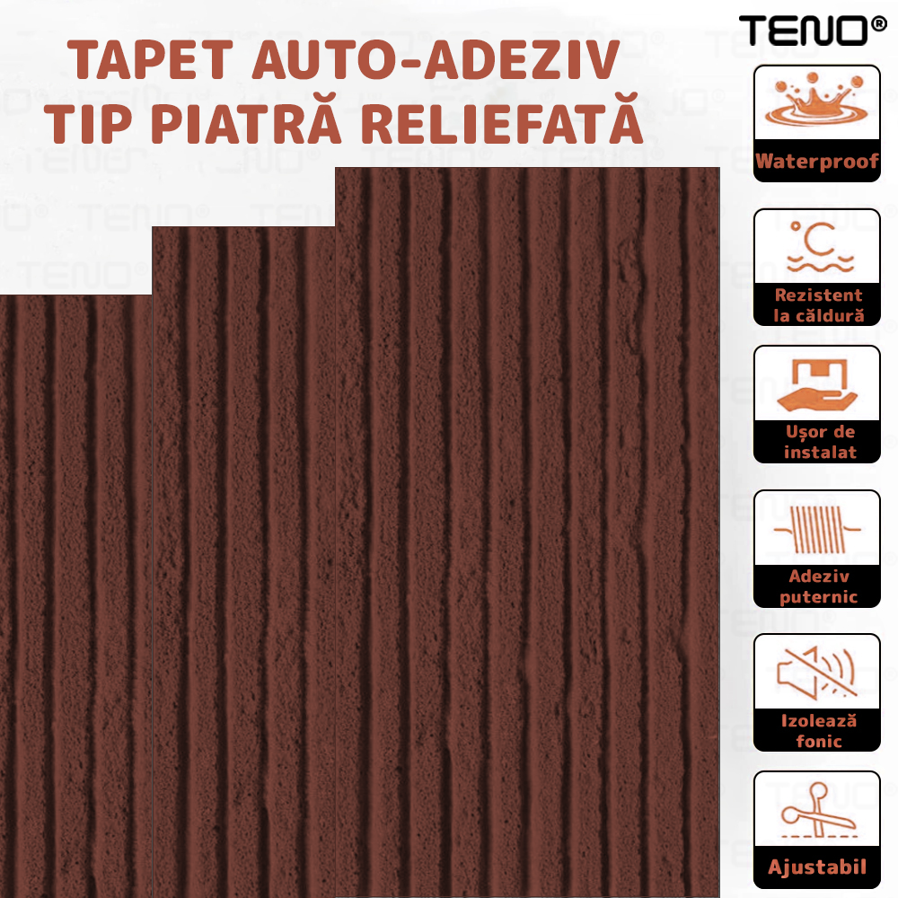 Set 10x Tapet 3D Teno2458, Model Piatra Dungata, suprafata acoperire 7.2 mp, autoadeziv, waterproof, usor de montat, design modern, 120 x 60 cm, maro