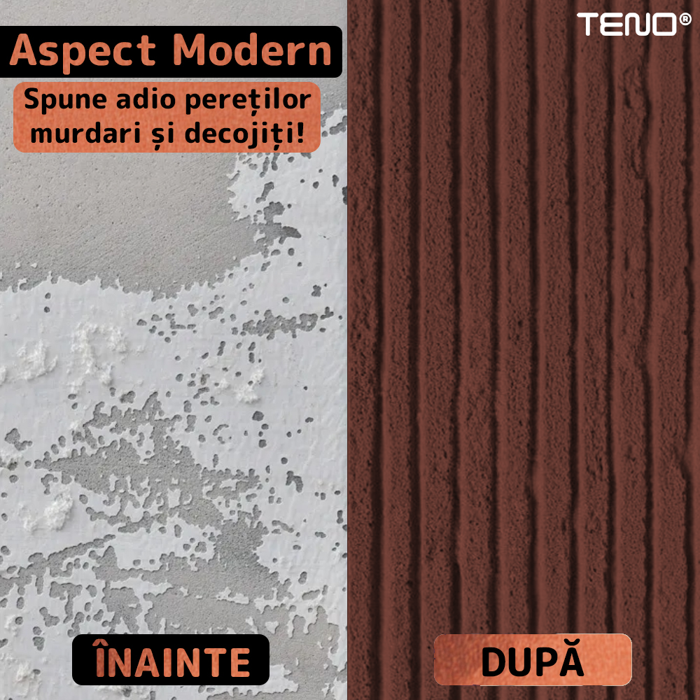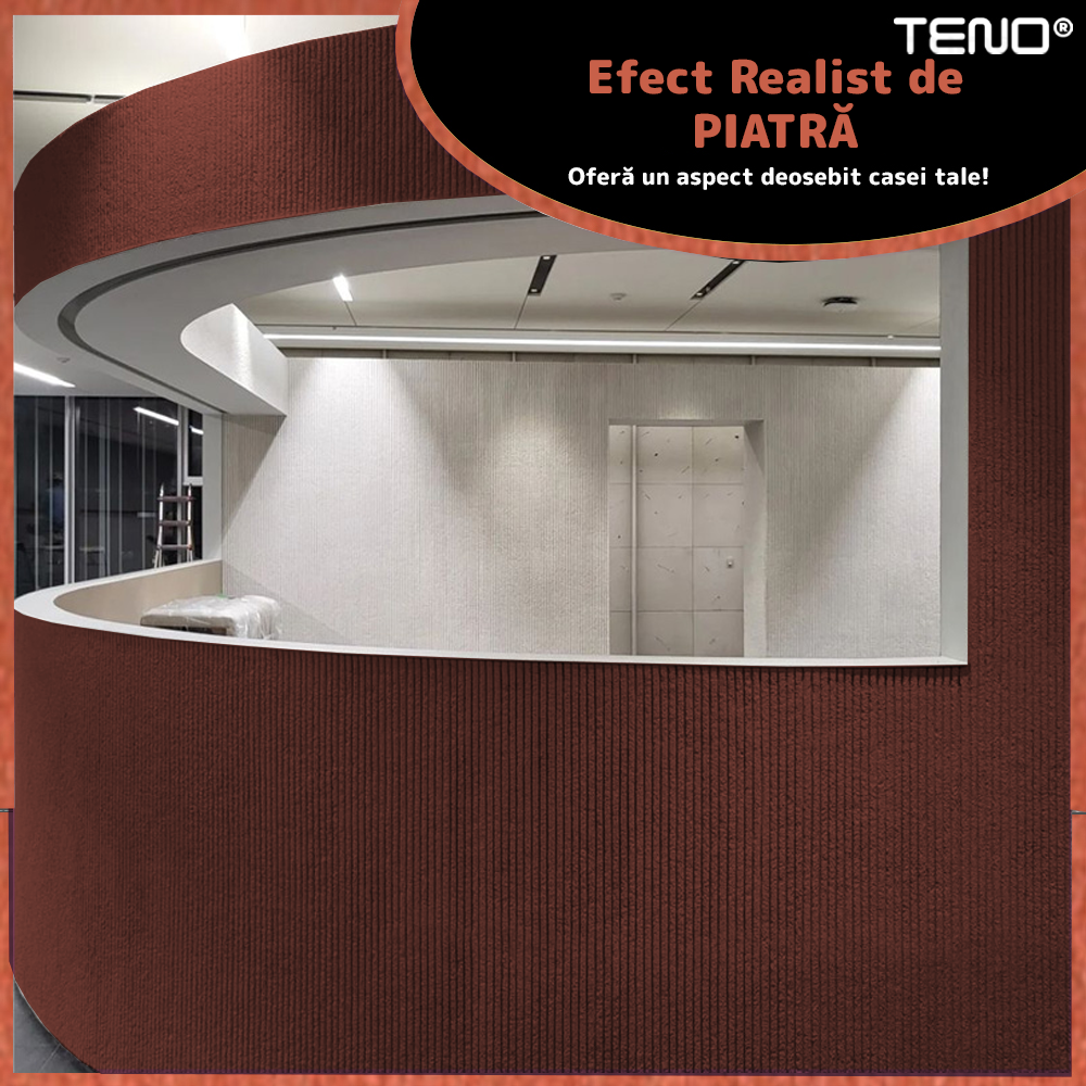 Finisajul cu efect realist de piatra ofera un aspect natural si elegant, reproducand fidel textura si detaliile specifice pietrei, pentru un decor modern si sofisticat, fara costurile si dificultatile materialelor naturale.