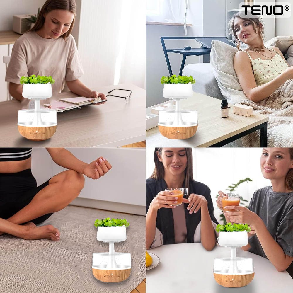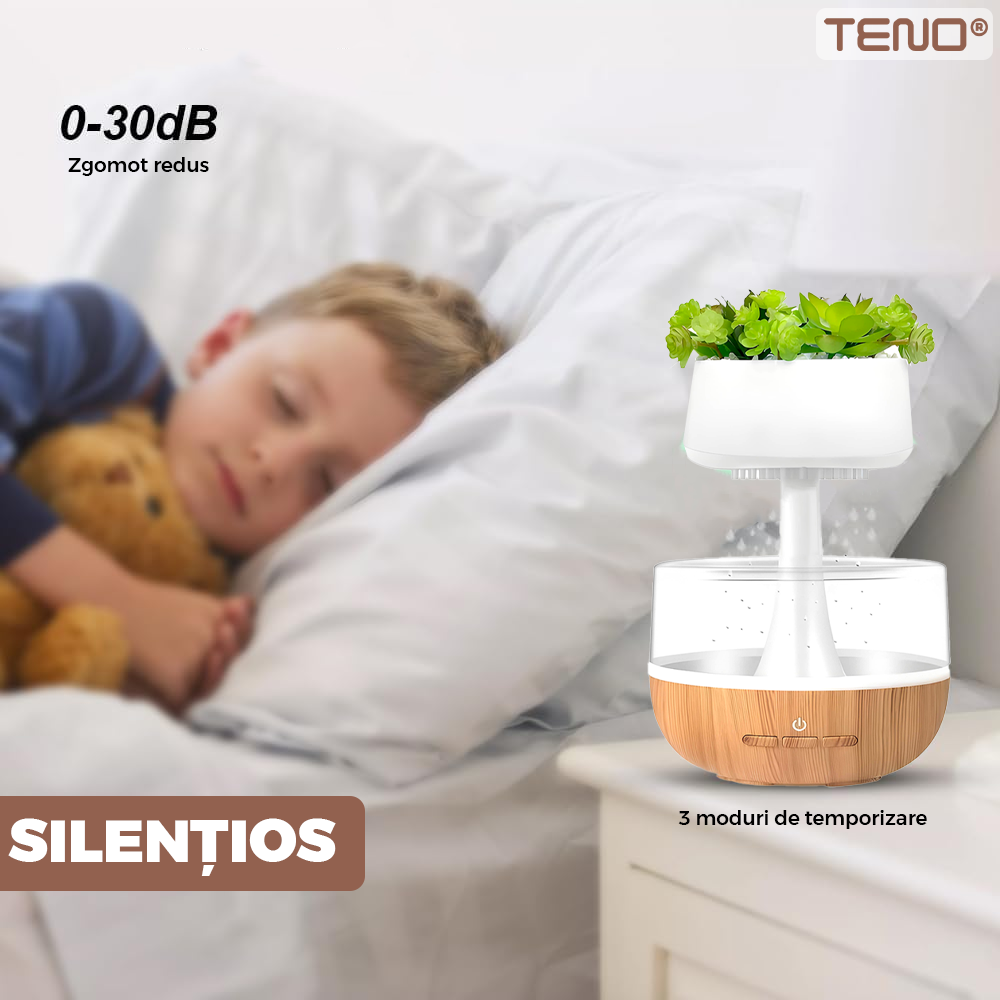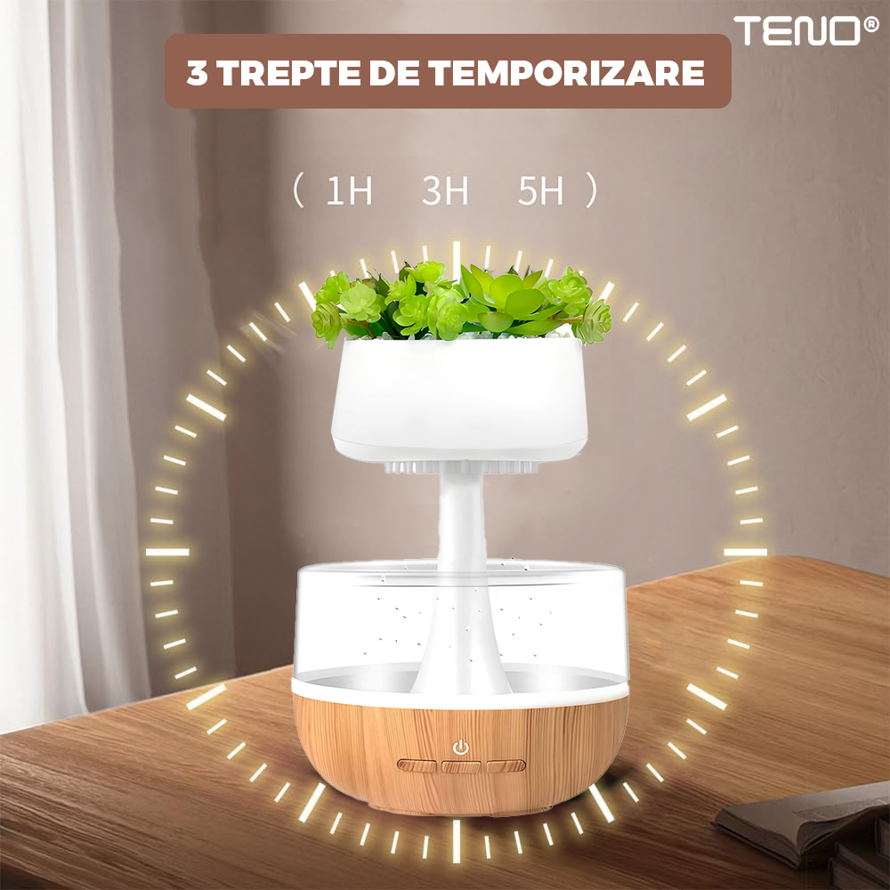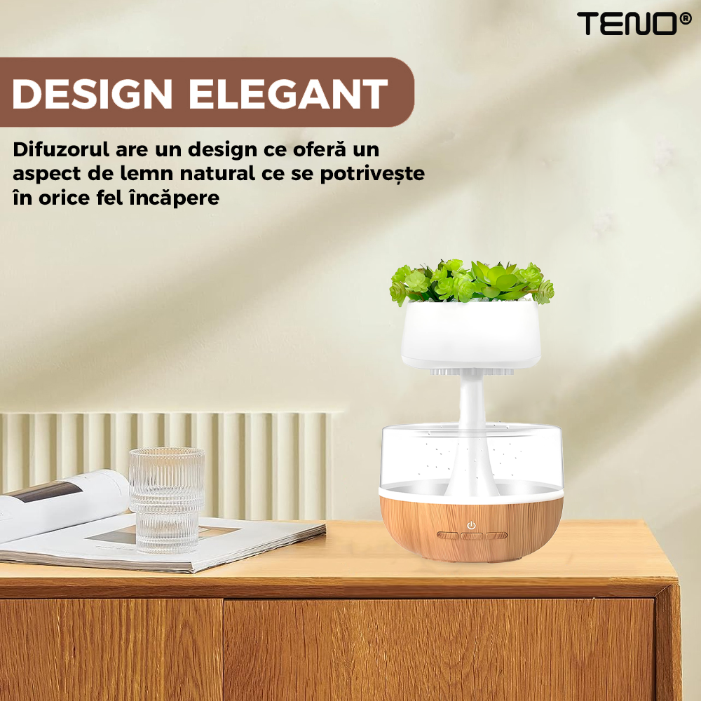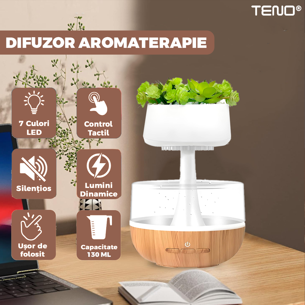 Difuzor Aromaterapie Teno2385, tip planta, efect de picuri, silentios, temporizator, capacitate 130 ml, maro