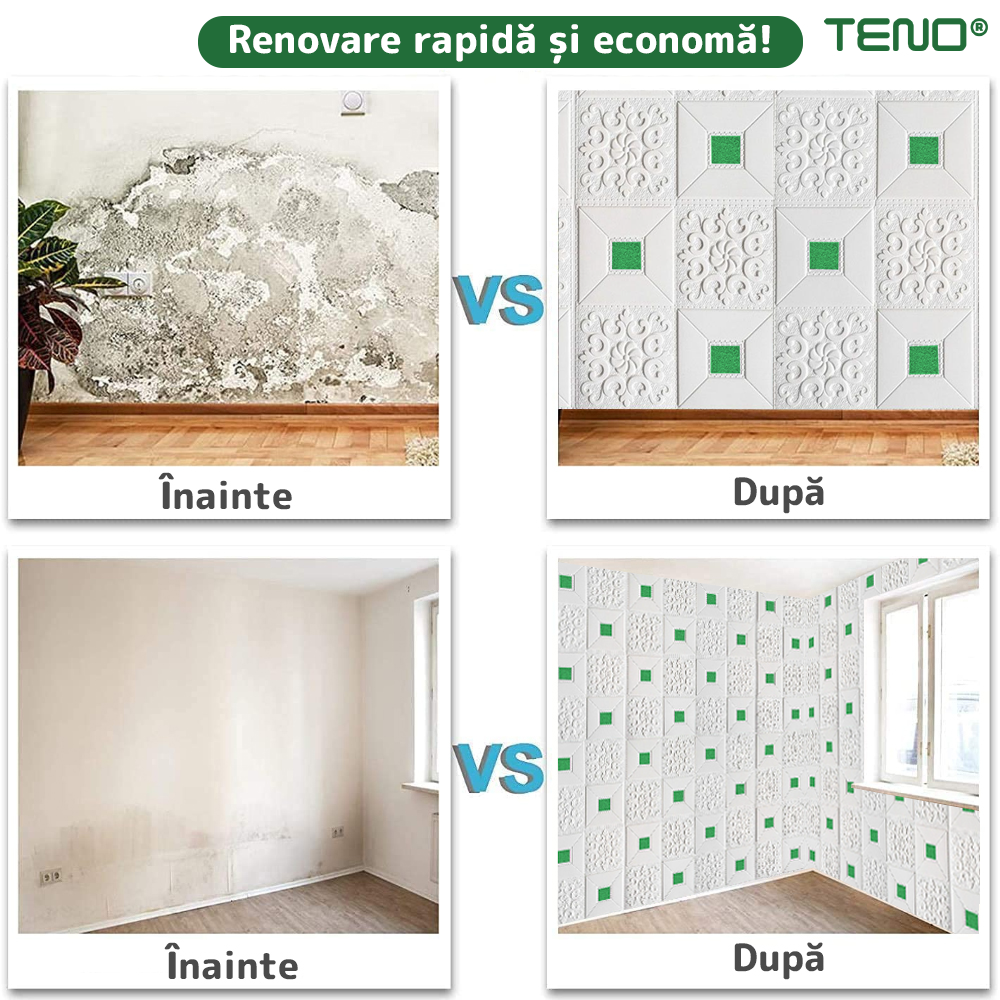 Tapetul 3D autocolant este o metoda inovatoare si eficienta in decorarea peretilor interiori. Este fabricat din spuma si este stil panou ,fiind cel mai simplu mod de a obtine spatii finisate cu stil.