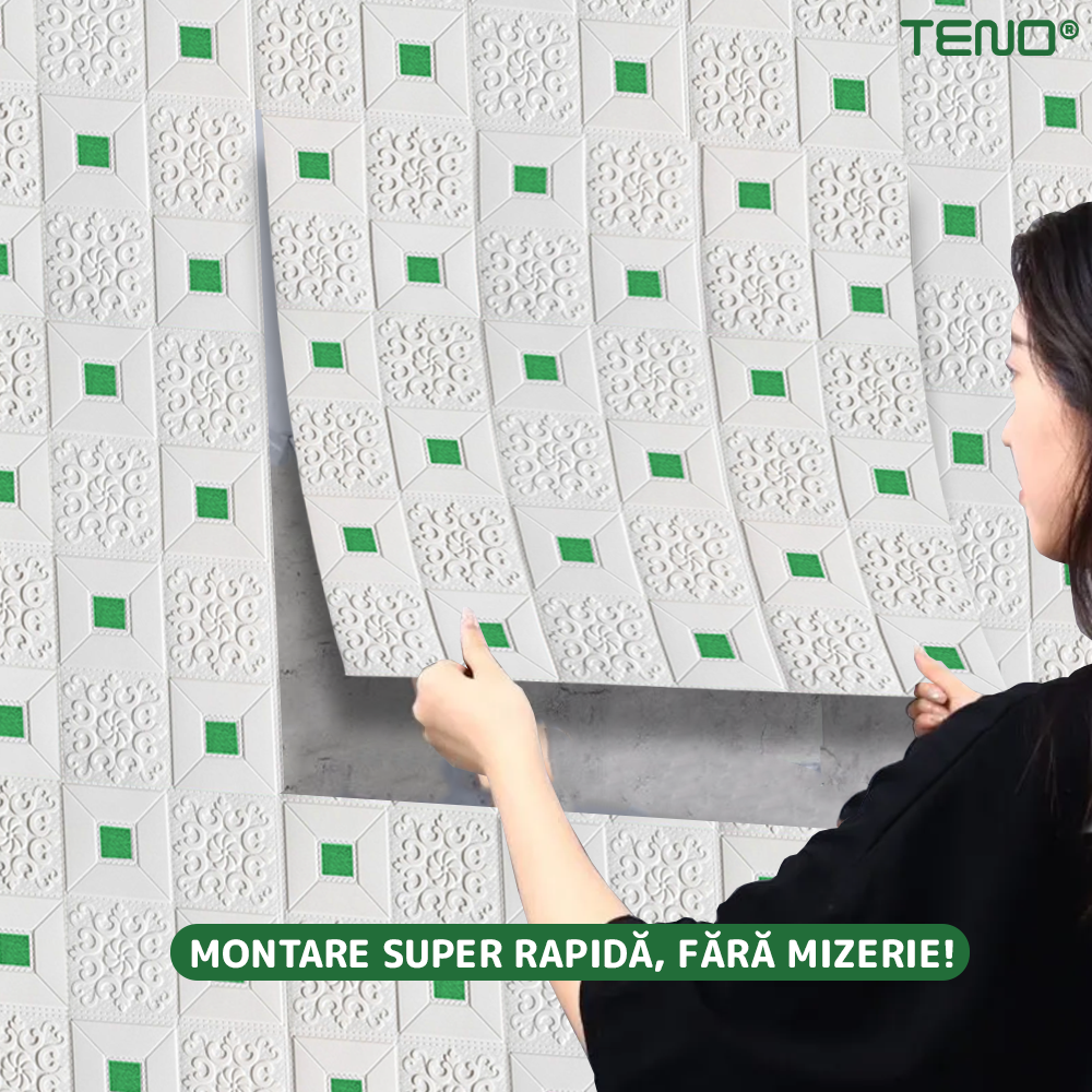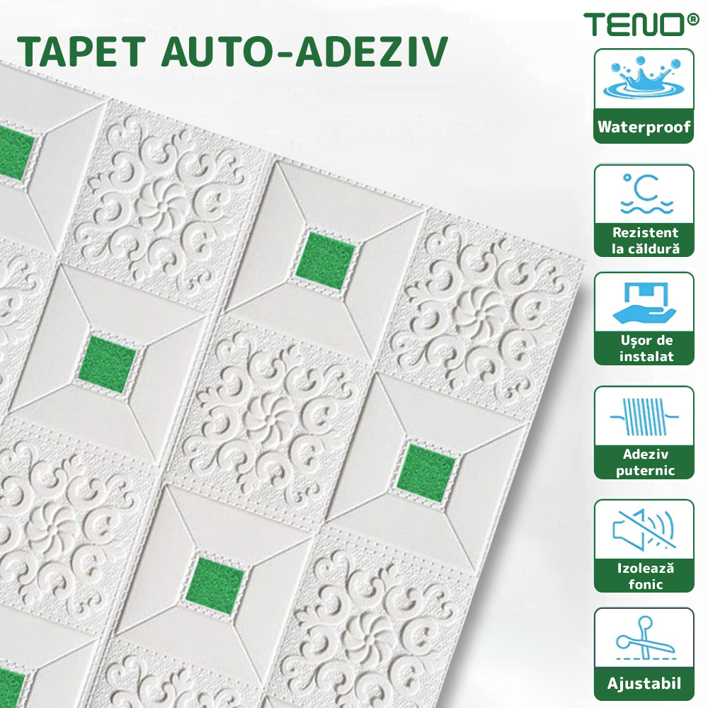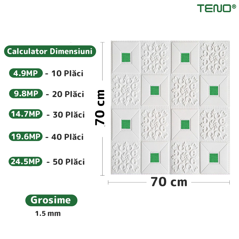 Set 10x Tapet 3D Teno1919, suprafata acoperire 4.9 mp, autoadeziv, perete/tavan, waterproof, usor de montat, design modern, 70x70 cm, verde