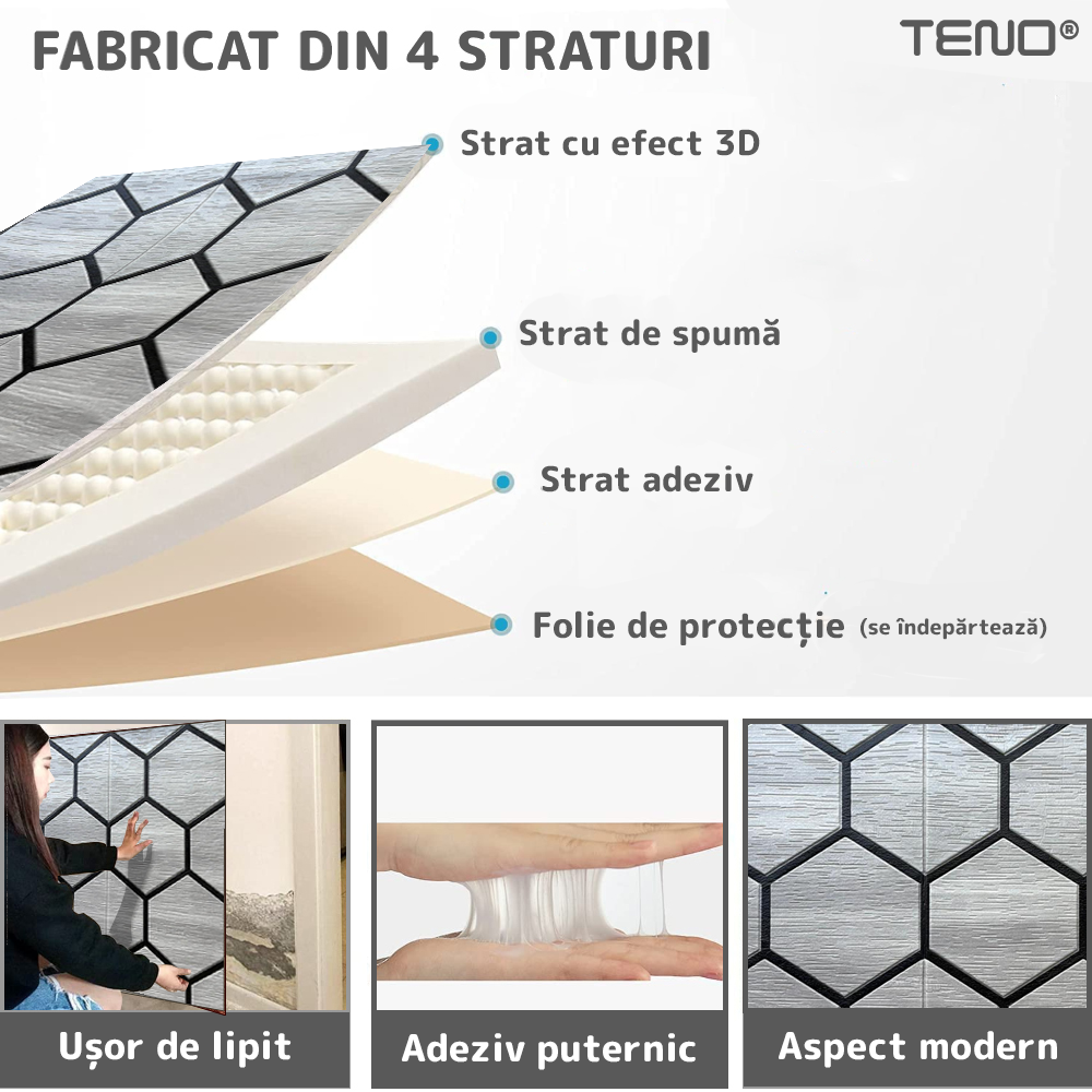 Tapetul 3D autocolant este o metoda inovatoare si eficienta in decorarea peretilor interiori. Este fabricat din spuma si este stil panou ,fiind cel mai simplu mod de a obtine spatii finisate cu stil.