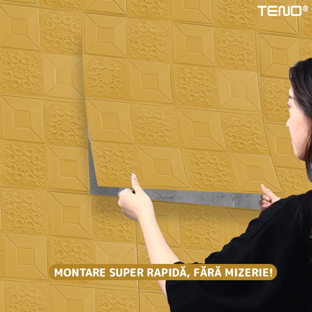 Tapetul 3D autocolant este o metoda inovatoare si eficienta in decorarea peretilor interiori. Este fabricat din spuma si este stil panou ,fiind cel mai simplu mod de a obtine spatii finisate cu stil.