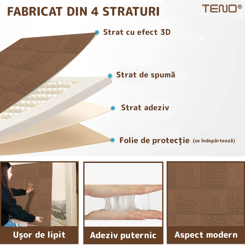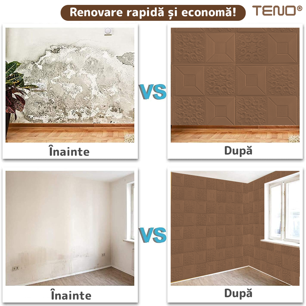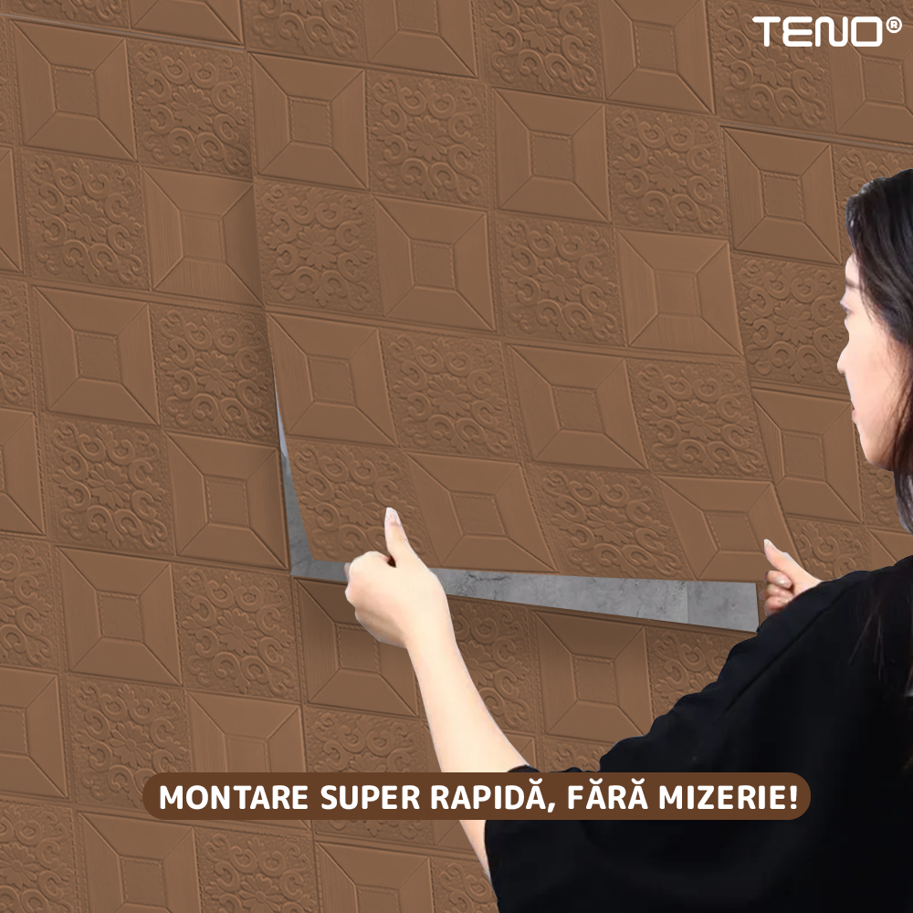 Tapetul 3D autocolant este o metoda inovatoare si eficienta in decorarea peretilor interiori. Este fabricat din spuma si este stil panou ,fiind cel mai simplu mod de a obtine spatii finisate cu stil.