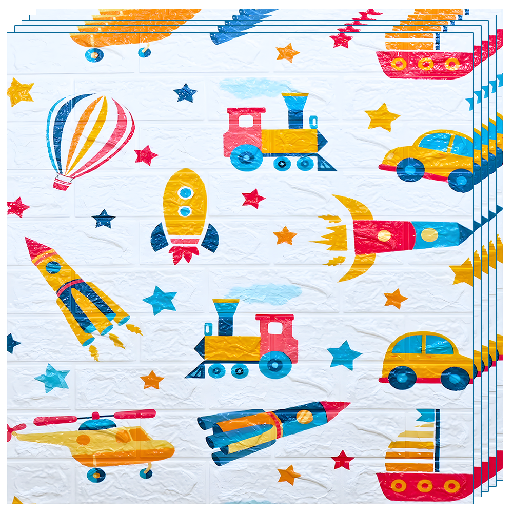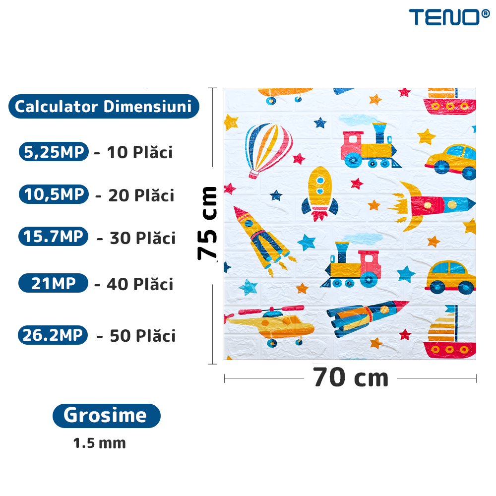 Set 10x Tapet Caramida 3D Teno1891, Model Rachete, suprafata acoperire 5.25 mp, autoadeziv, waterproof, usor de montat, design modern, 70x75 cm, alb