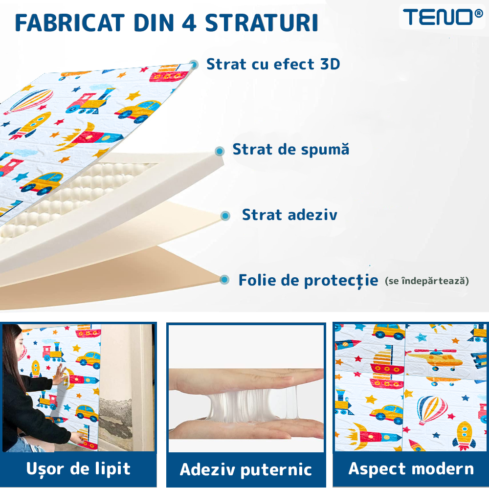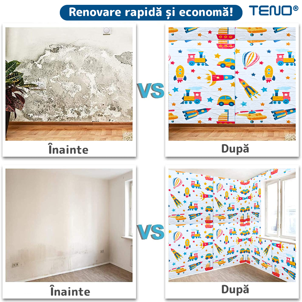 Tapetul 3D autocolant este o metoda inovatoare si eficienta in decorarea peretilor interiori. Este fabricat din spuma si este stil panou ,fiind cel mai simplu mod de a obtine spatii finisate cu stil.