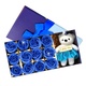 Ursulet cu Trandafiri din Sapun Teno1595, cutie in forma patrata cu buline, mesaj pe tablita din lemn ”I LOVE YOU”, 6 trandafiri, fustita si cristal, albastru regal