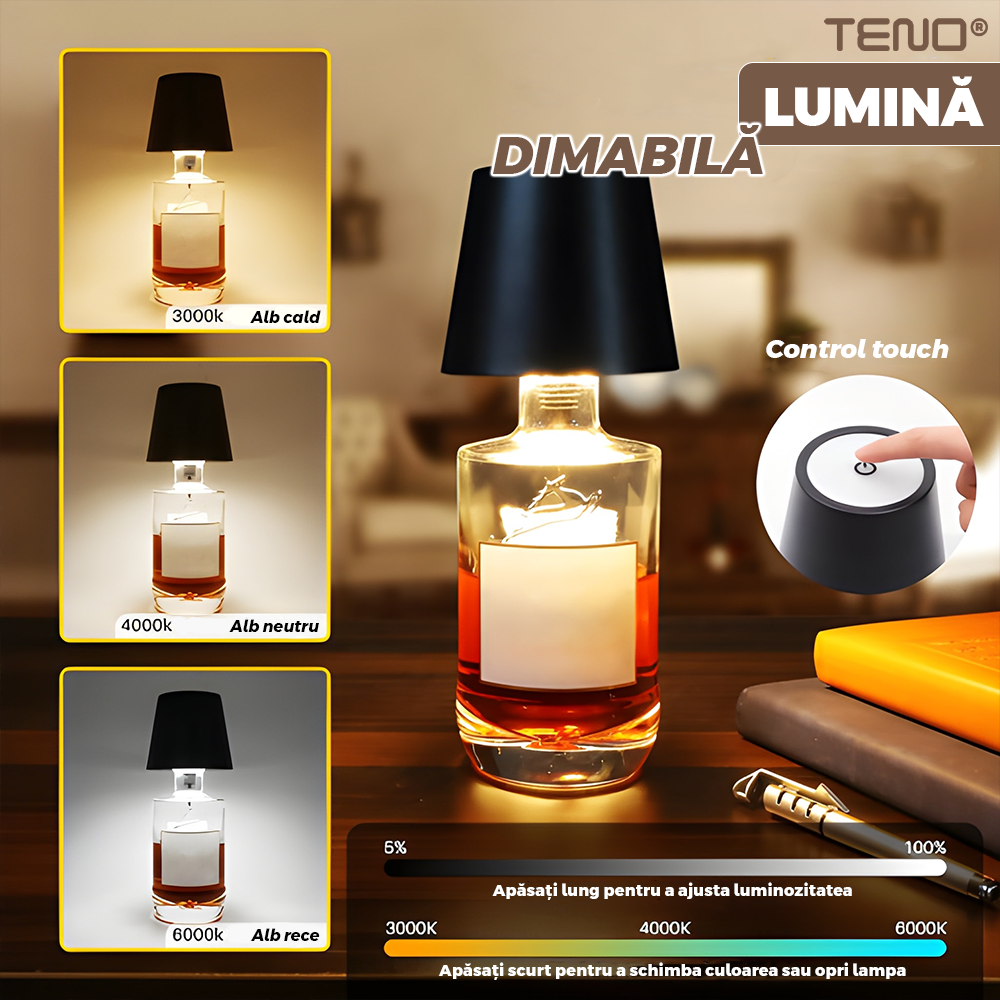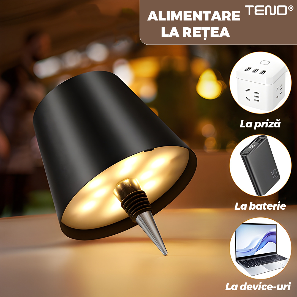 Lampa de Veghe Portabila Teno2153, pentru sticle, lumini LED, reincarcabila, dimabila, 3 moduri de iluminare, autonomie 10-20 ore, 5 W, negru