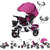 Tricicleta pentru Copii Teno2249, copertina cu protectie UV, spatar reglabil pozitie somn, suport pentru picioare, pedale, maner de ghidaj, pliabila, cosulete depozitare, roz