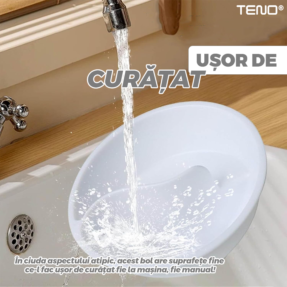 Fabricat din materiale rezistente si netede, bolul este foarte simplu de curatat atat manual, cat si in masina de spalat vase. Suprafata sa nu retine mirosuri sau reziduuri, asigurand o igiena perfecta la fiecare utilizare.